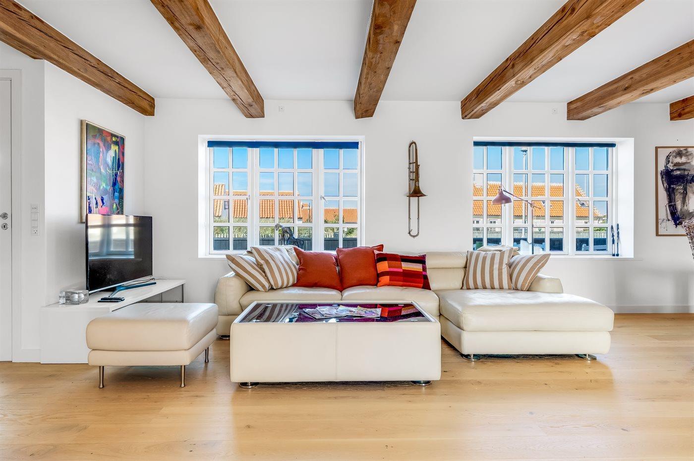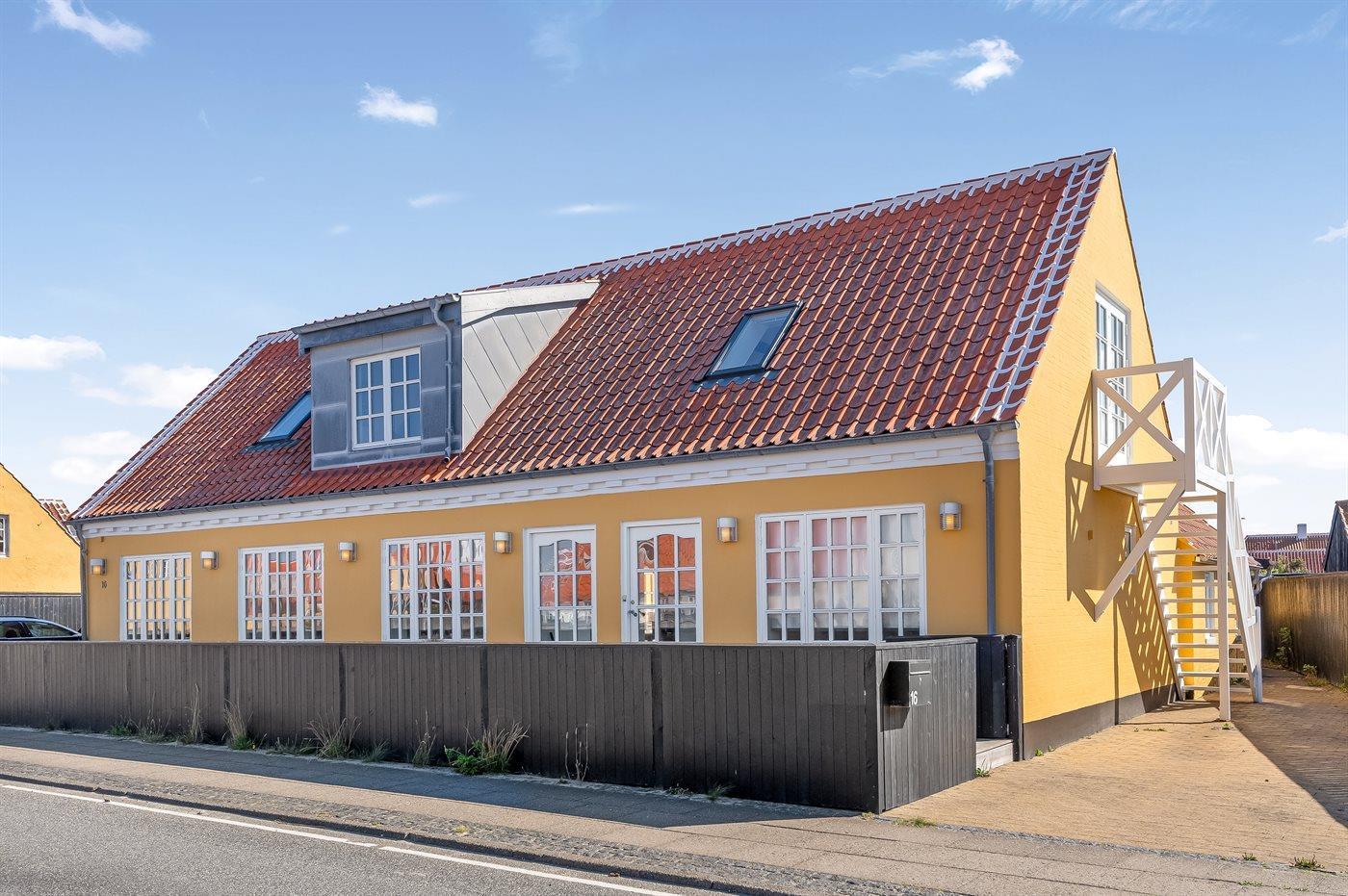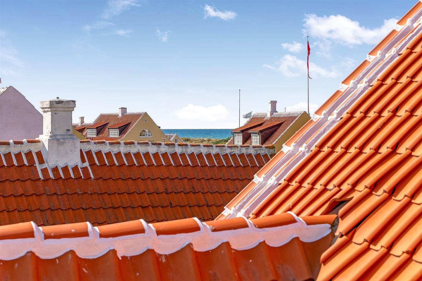 Dieses wunderschöne Ferienhaus liegt im Herzen des charmanten Gl. Skagen, nur etwa 200 Meter vom ikonischen Sonnenuntergangsplatz entfernt, wo sich der Himmel jeden Abend in spektakulären Farben zeigt.