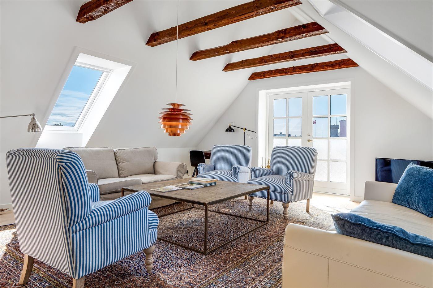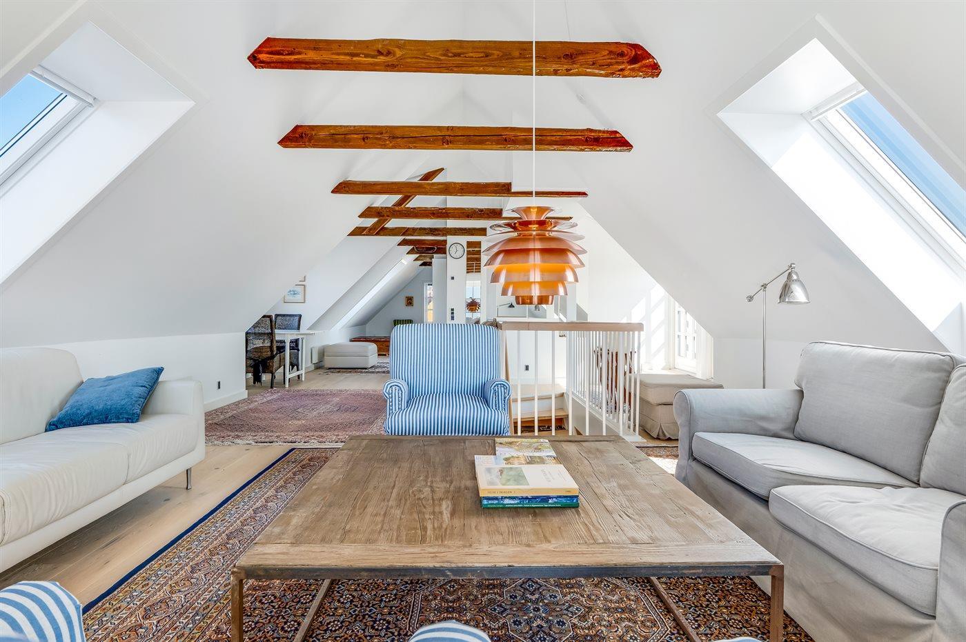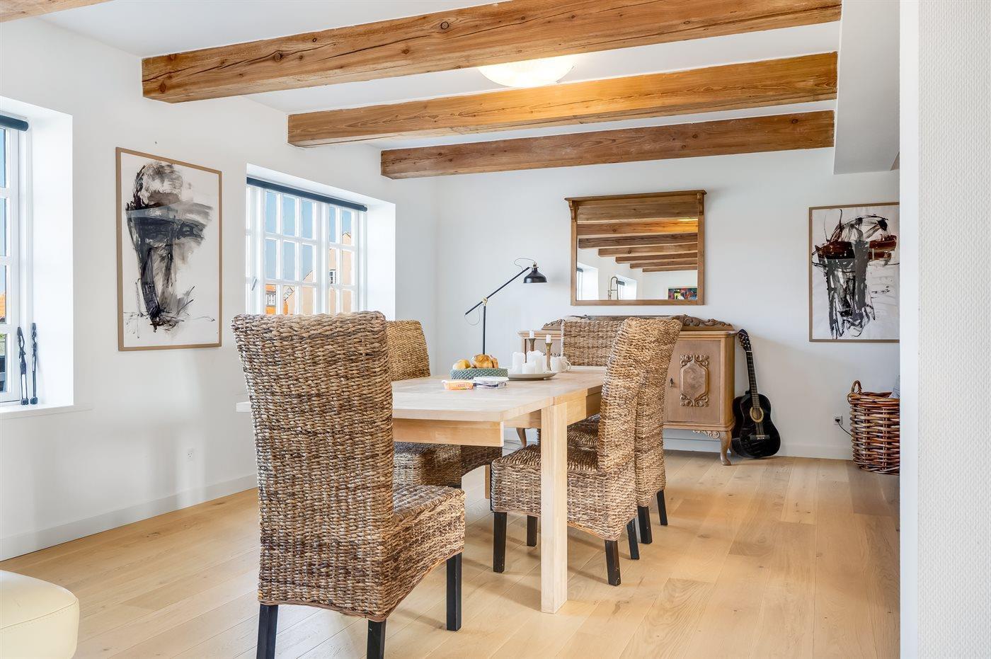 Dieses wunderschöne Ferienhaus liegt im Herzen des charmanten Gl. Skagen, nur etwa 200 Meter vom ikonischen Sonnenuntergangsplatz entfernt, wo sich der Himmel jeden Abend in spektakulären Farben zeigt.