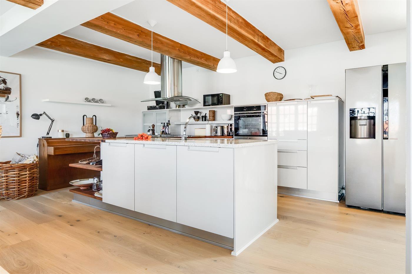 Die Küche ist mit 4 Kühlschränke ausgestattet Die Küche ist mit amerikanischem Kühlschrank ausgestattet. Außerdem gibt es 4 Induktions-Kochzonen, Umluftofen, Mikrowelle sowie Geschirrspüler.