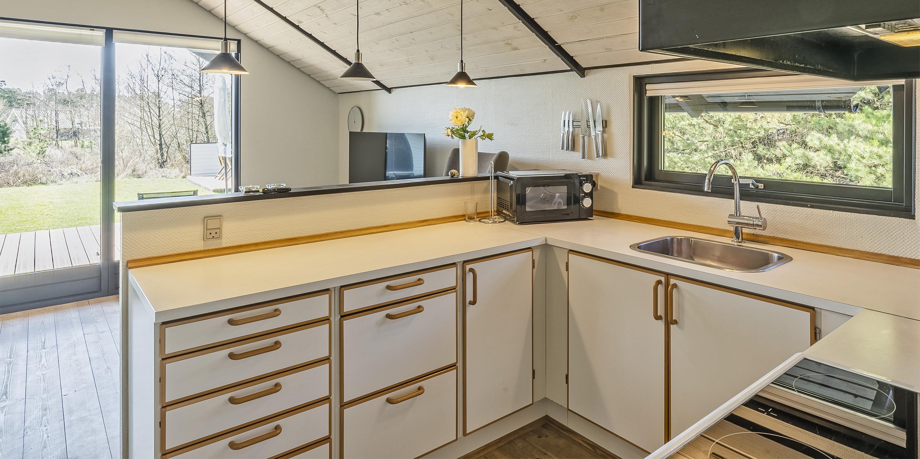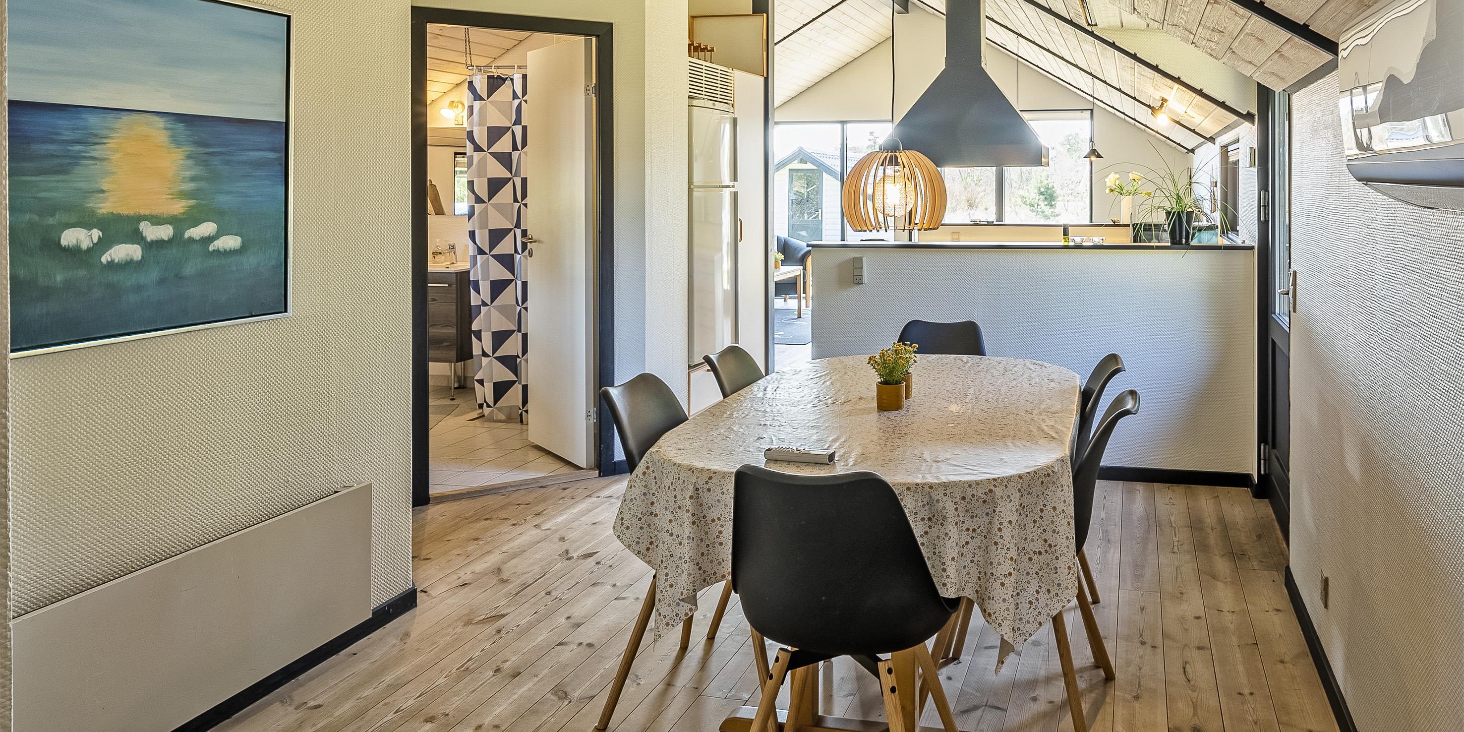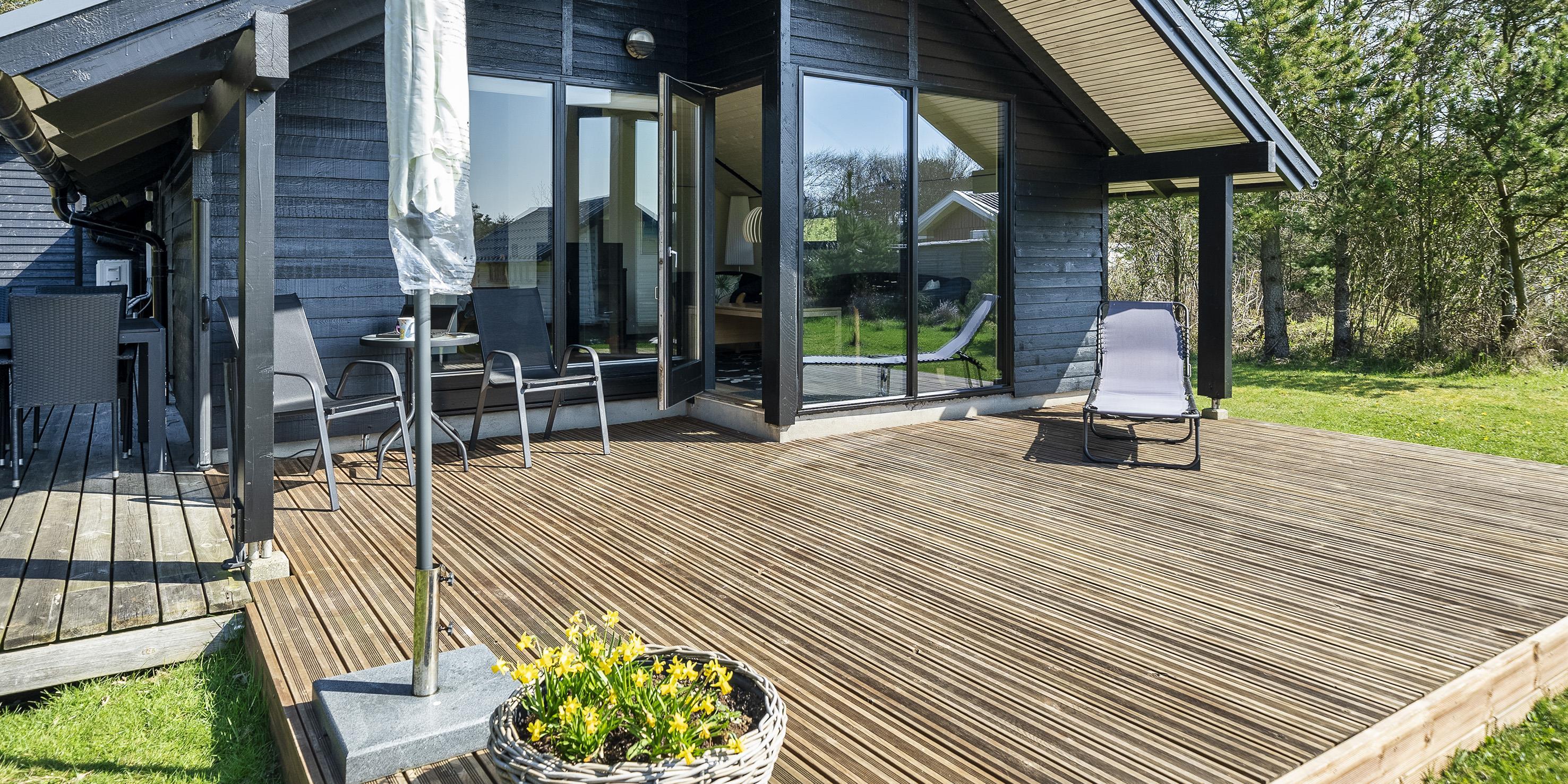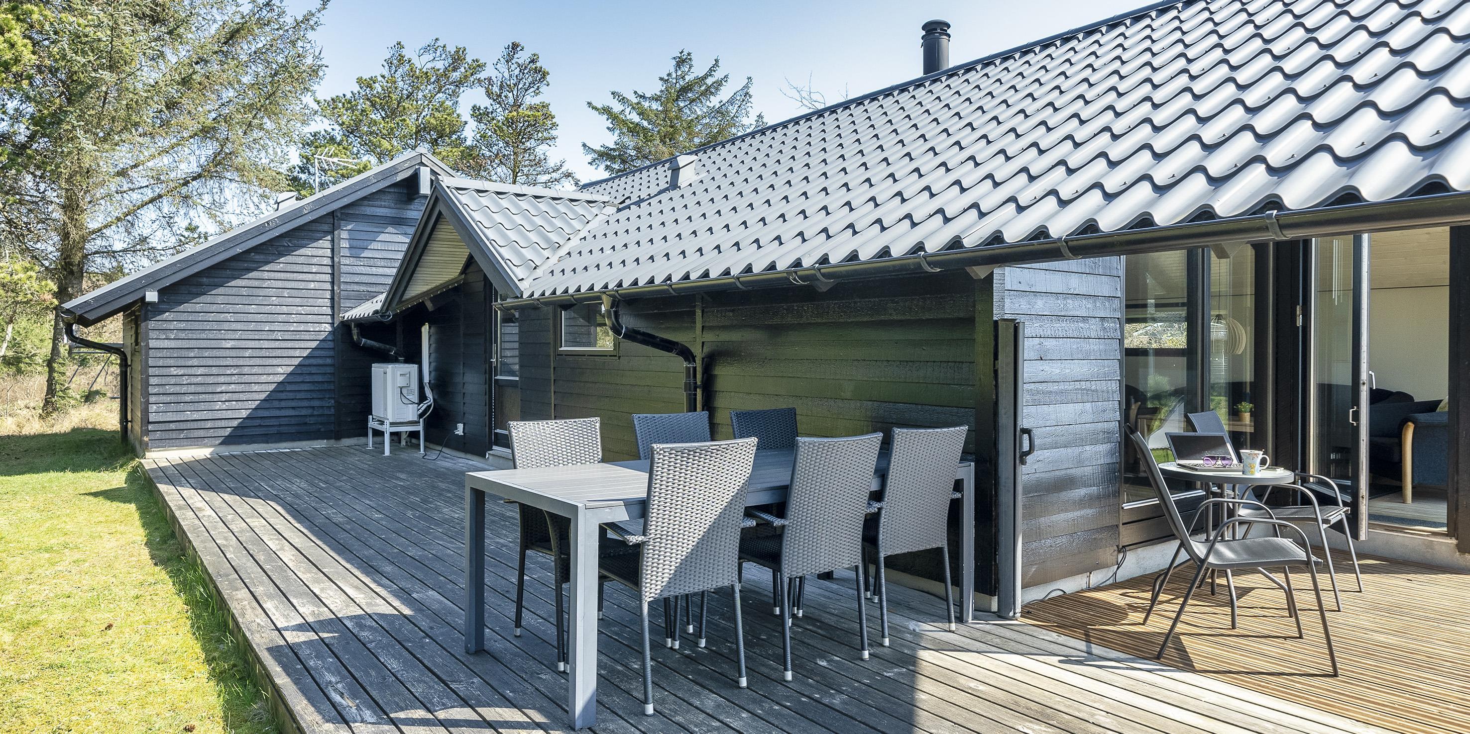 Dieses Ferienhaus liegt auf einem schönen Rasengrundstück und ist für 6 Personen ausgerichtet. Der Strand ist ca. 600 Meter vom Ferienhaus entfernt. Der Strand ist kein Autostrand, er ist nur über die Dünenkette zu erreichen. Grærup Strand bietet keine Einkaufsmöglichkeiten, das müsste dann in dem nächsten Ort Vejers Strand erledigt werden. Vejers Strand liegt nur 7 Km von Grærup entfernt. Das Ferienhaus ist sehr persönlich eingerichtet und in 2020 wurden diverse Möbel erneuert. Das Ferienhaus beinhaltet einen Eingang mit Garderobe und in offenener Verbindung zum Essbereich. Grosser Wohnbereich mit hohen Decken. Hier im Wohnbereich befindet sich der Kamin und spendet eine gemütliche Atmosphäre. Es befindet sich eine Warmepumpe im Ferienhaus. Mit dieser Warmepumpe haben sie die Möglichkeit die Stromkosten zu senken, denn die Warmepumpe ist energiesparend. Das deutsche Fernsehprogramm empfangen Sie über eine Parabolantenne. Vom Essbereich ist der Zugang zum Badezimmer. Das Bad verfügt über ein Handwaschbecken, ein WC und eine Dusche. Eine weitere Gästetoilette mit Dusche befindet sich ebenfalls im Ferienhaus. Die helle Küche verfügt über eine Geschirrspülmaschine, einer Mikrowelle, einem Herd mit Kochplatten und mit Backofen und einem Kühl-/Gefrierkombination. Es gibt insgesamt drei Schlafzimmer für die Gäste. Zwei Schlafzimmer verfügen über je einem Doppelbett und das Dritte Schlafzimmer verfügt über zwei einzelne Betten. Eine Waschmaschine und eine separate Gefriertruhe befinden sich ebenfalls im Ferienhaus. Es gib mehrere Ausgänge zu den Terrassenbereichen. Der hintere Terrassenbereich ist sogar überdacht. Das Haus verfügt über einen Internetanschluss (W-Lan). Das Rauchen im Ferienhaus ist nicht erlaubt. Es sind drei Haustiere erlaubt. Rundum gibt es verschiedene Terrassenbereiche, so das Sie mit der Wanderung der Sonne jeden Sonnenstrahl geniessen können. Jugendgruppen sind in diesem Ferienhaus nicht erwünscht. Das Ferienhaus ist in 1995 erbaut worden. 3 Schlafzimmer: DB + DB + 2B.