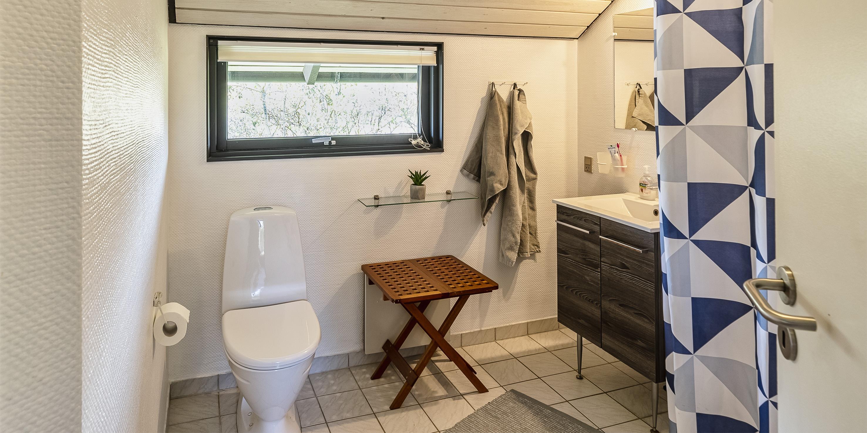Badezimmer mit Toilette, Dusche und Waschbecken