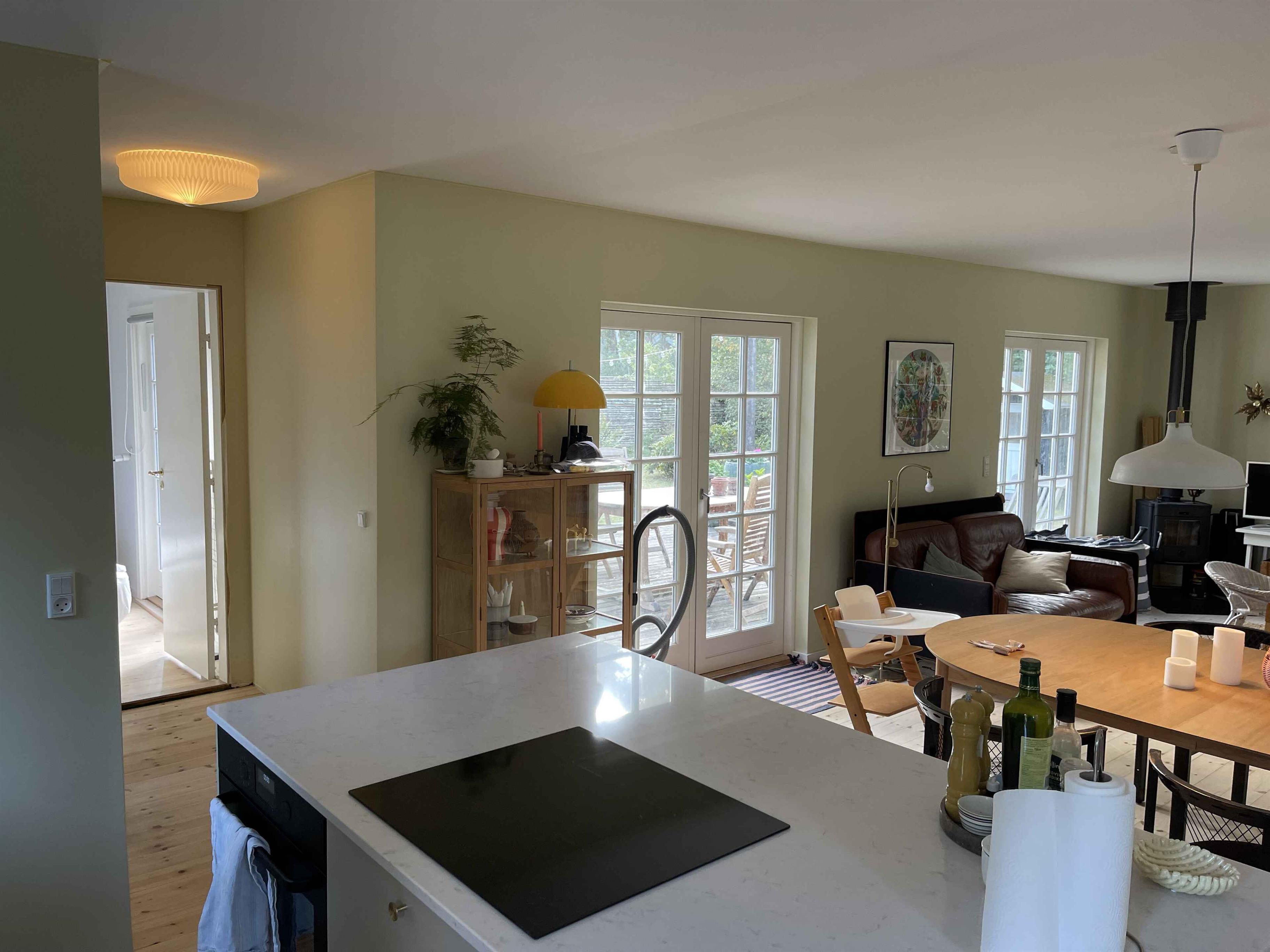 Dieses gemütliche Ferienhaus mit 64 m² bietet eine einfache und gut funktionierende Grundlage für den Urlaub. Zwei Schlafzimmer – ein schönes Elternschlafzimmer und ein kleineres Kinderzimmer – bieten insgesamt vier Schlafplätze, ideal für eine kleine Familie oder ein Paar, das Ruhe sucht. Innen erwartet Sie eine neu renovierte Küche mit einem guten Essbereich und Blick in den Garten. Die Küche geht fließend in das Wohnzimmer über, wo eine gemütliche Ecke zu entspannten Abenden einlädt. Der Grundriss erleichtert gemeinsames Kochen, Spielen oder Lesen. Das Wasser ist 900 Meter entfernt, und die Umgebung lädt zu täglichen Spaziergängen zum Strand ein. Das nahe AP-Møller-Gelände und die beeindruckenden Rhododendren von Rågegården bieten besondere Naturmomente, besonders im Frühling. Die Region verbindet Küstennatur mit vielen Aktivitäten und Ausflügen. Gilleleje und Liseleje sind nur eine kurze Autofahrt entfernt und bieten Einkaufsmöglichkeiten, Cafés, Hafenleben und Restaurants. In Blistrup gibt es gute Einkaufsmöglichkeiten, und zahlreiche Radwege und kleine Pfade prägen die Umgebung. Das Viertel ist ruhig und grün, ideal um abzuschalten und den Urlaub in entspannter Atmosphäre zu genießen. Der kleine Garten bietet Platz für Spielen, Grillen und sonnige Stunden. Insgesamt ein Ferienhaus, in dem Einfachheit, Lage und Natur harmonisch zusammenspielen – perfekt für einen unbeschwerten Urlaub in Strand- und Waldnähe sowie charmanten Küstenorten.