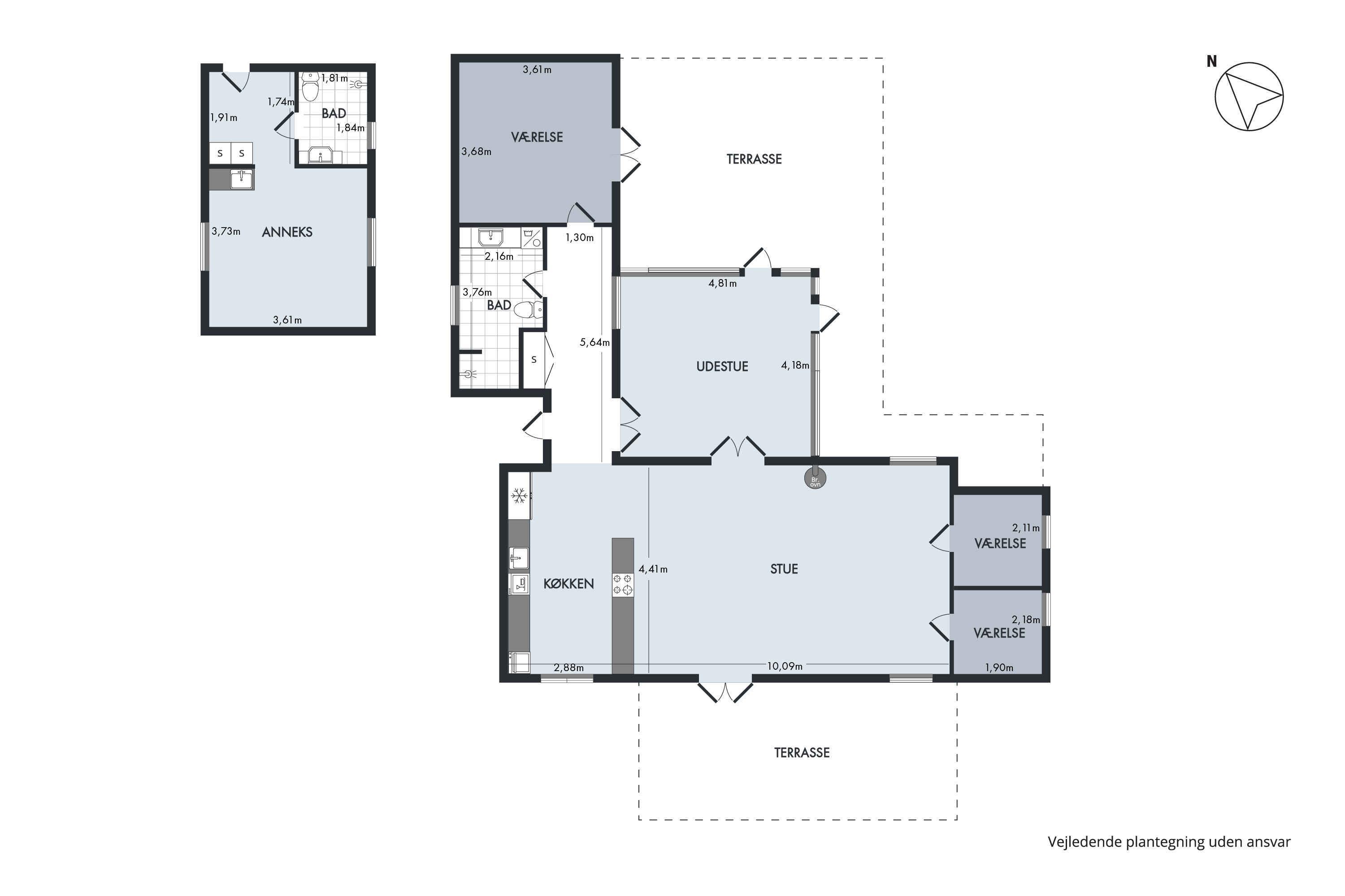 Modernes Ferienhaus in Nordseeland am Strand von Udsholt. Perfekt für Familien. Baby- und kinderfreundlich - Hausbesitzer hat ein kleines Kind :-) Im Haus sind sowohl Juniorbetten als auch Reisebetten und Hochstühle vorhanden. Das Haus verfügt über insgesamt 115 schöne Quadratmeter, aufgeteilt in 4 Schlafzimmer mit 2 Doppelbetten, 1 Etagenbett, 1 Einzelbett und einem Schlafplatz auf dem Schlafsofa. Insgesamt Platz für 5 Personen. Darüber hinaus verfügt das Haus über ein schönes großes Wohnzimmer mit einer liebevoll ausgestatteten Küche, einem schönen Essbereich und einer gemütlichen Sofaecke. An kühlen Tagen lädt ein Holzofen zum Verweilen ein. Es gibt auch 2 größere Badezimmer, von denen eines über einen Wickeltisch verfügt. Der große Bonus ist das 20 m² große Nebengebäude - separates Gebäude mit großem Schlafzimmer, Teeküche und eigenem Bad und WC. Hier gibt es auch einen Büroarbeitsplatz mit höhenverstellbarem Schreibtisch und Bürostuhl - fantastisches WLAN. Alle Gebäude verfügen über Klimaanlage/Heizung. Das Hauptgebäude verfügt über Fußbodenheizung. Vom Haus sind es nur 900 m zum schönen kinderfreundlichen Strand und nur 2 km zu den Geschäften. Udsholt liegt zentral in Bezug auf Natur und Attraktionen in Nordseeland. Die nächsten etwas größeren Städte sind Helsinge und Gilleleje, aber auch Städte wie Hillerød und Helsingør sind eine halbe Stunde mit dem Auto entfernt.