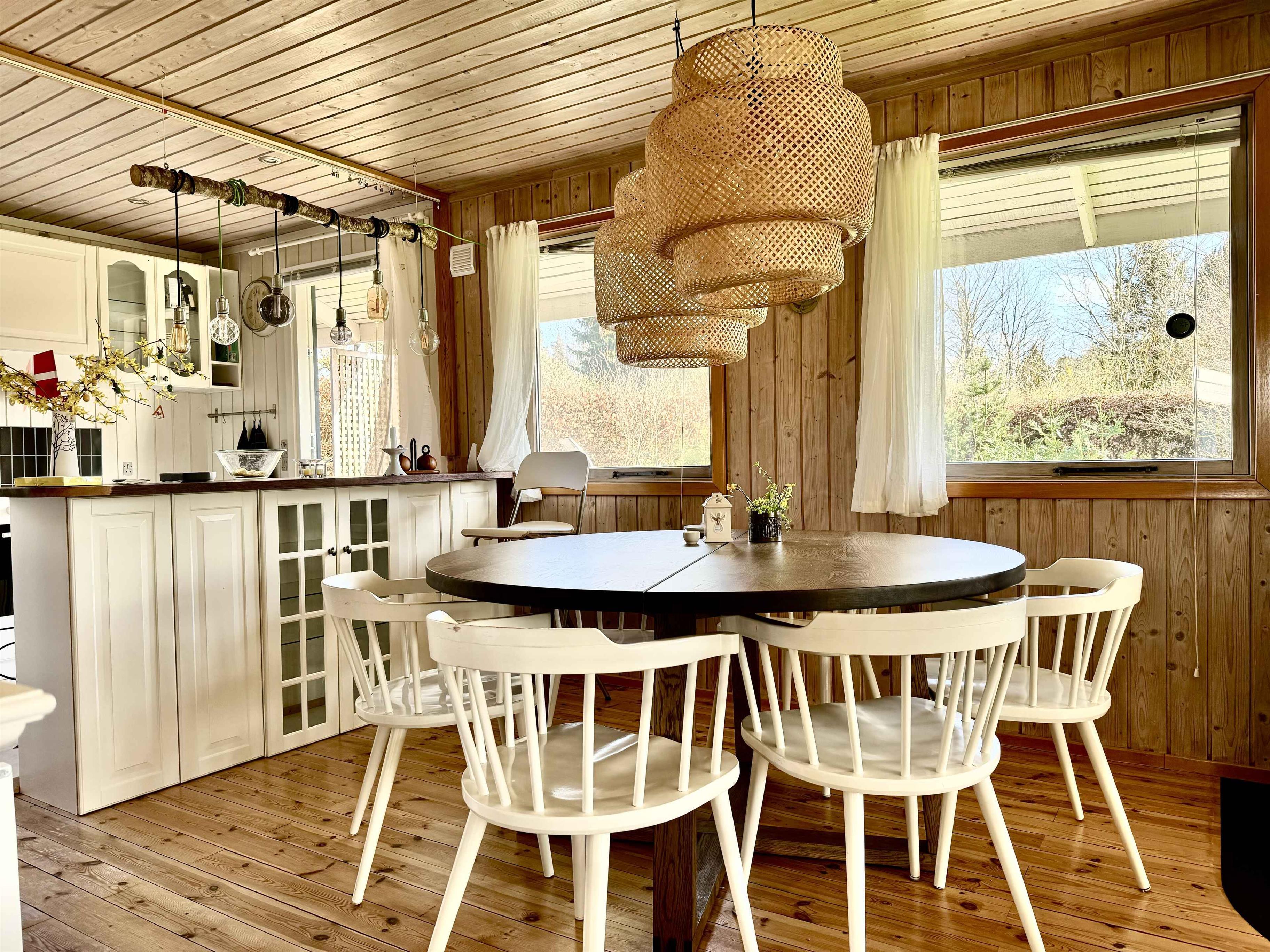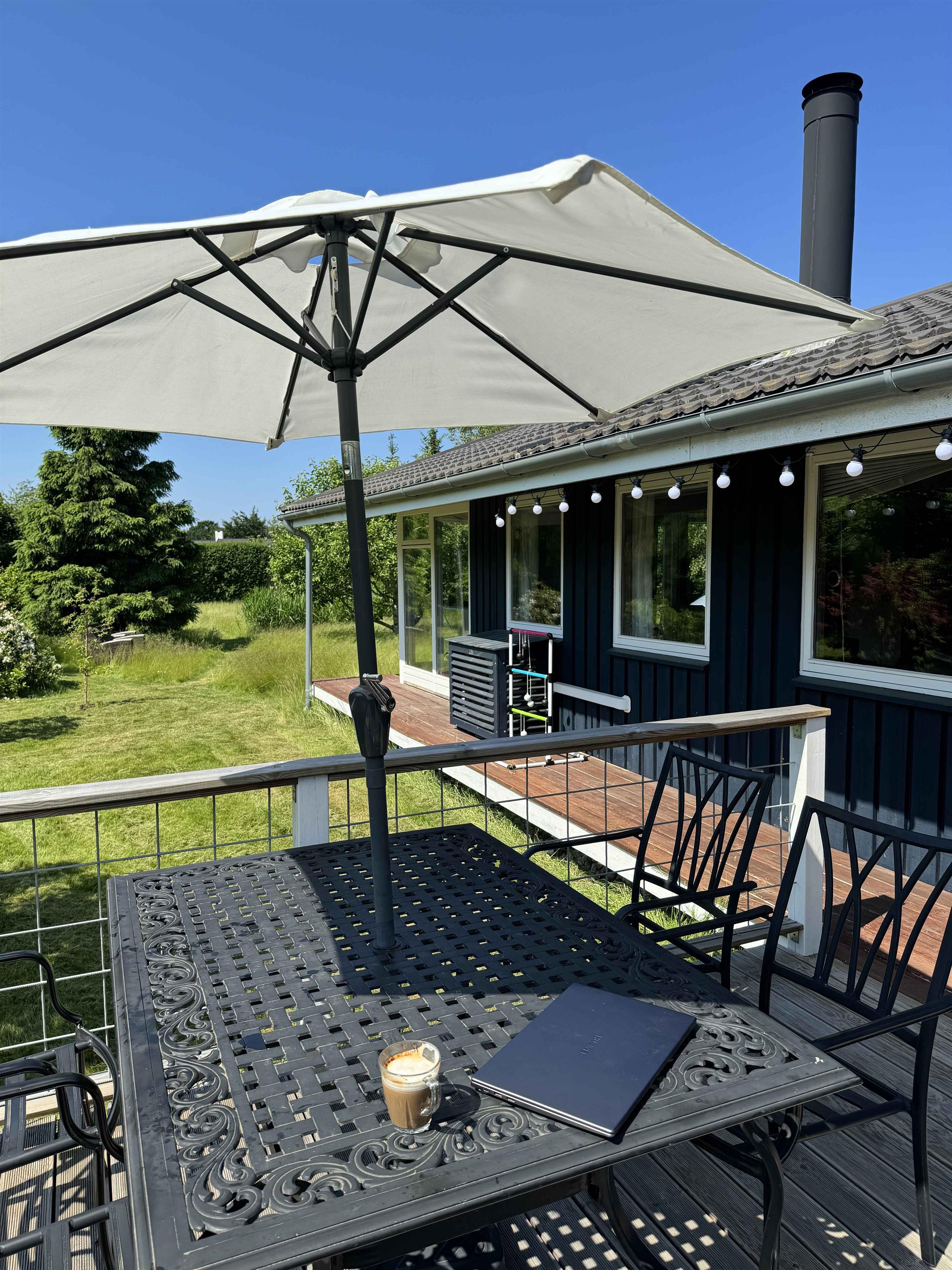 Großes, ungestörtes Grundstück. Zwei schöne Zimmer und ein Gartenzimmer. Schöne Terrassen laden zum Morgenkaffee oder Grillen ein. Der Holzofen sorgt zusätzlich zur Wärmepumpe für Gemütlichkeit. Der Strand ist nur kurzen Spaziergang entfernt