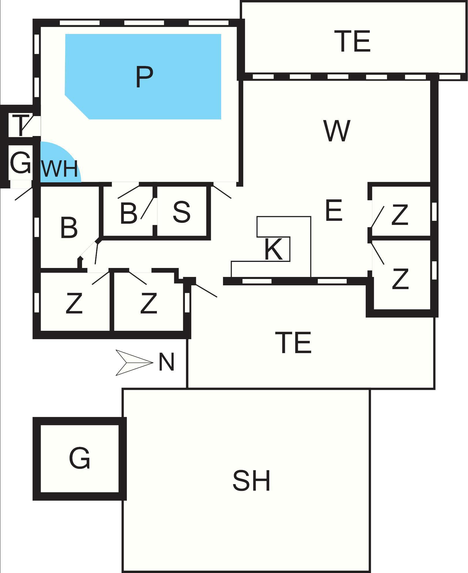 Auf einem großen, leicht hügeligen Dünen- und Naturgrundstück, nur etwa 200 m von dem breiten Sandstrand bei Grønhøj entfernt, liegt dieses ansprechend eingerichtete Ferienhaus mit Swimmingpool, Whirlpool und Sauna für Badespaß und erholsame Stunden. Sowohl vom Inneren als auch vom Grundstück aus hat man einen schönen Ausblick zur Küste!