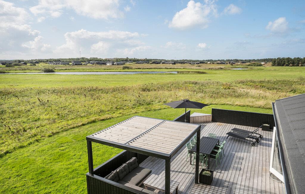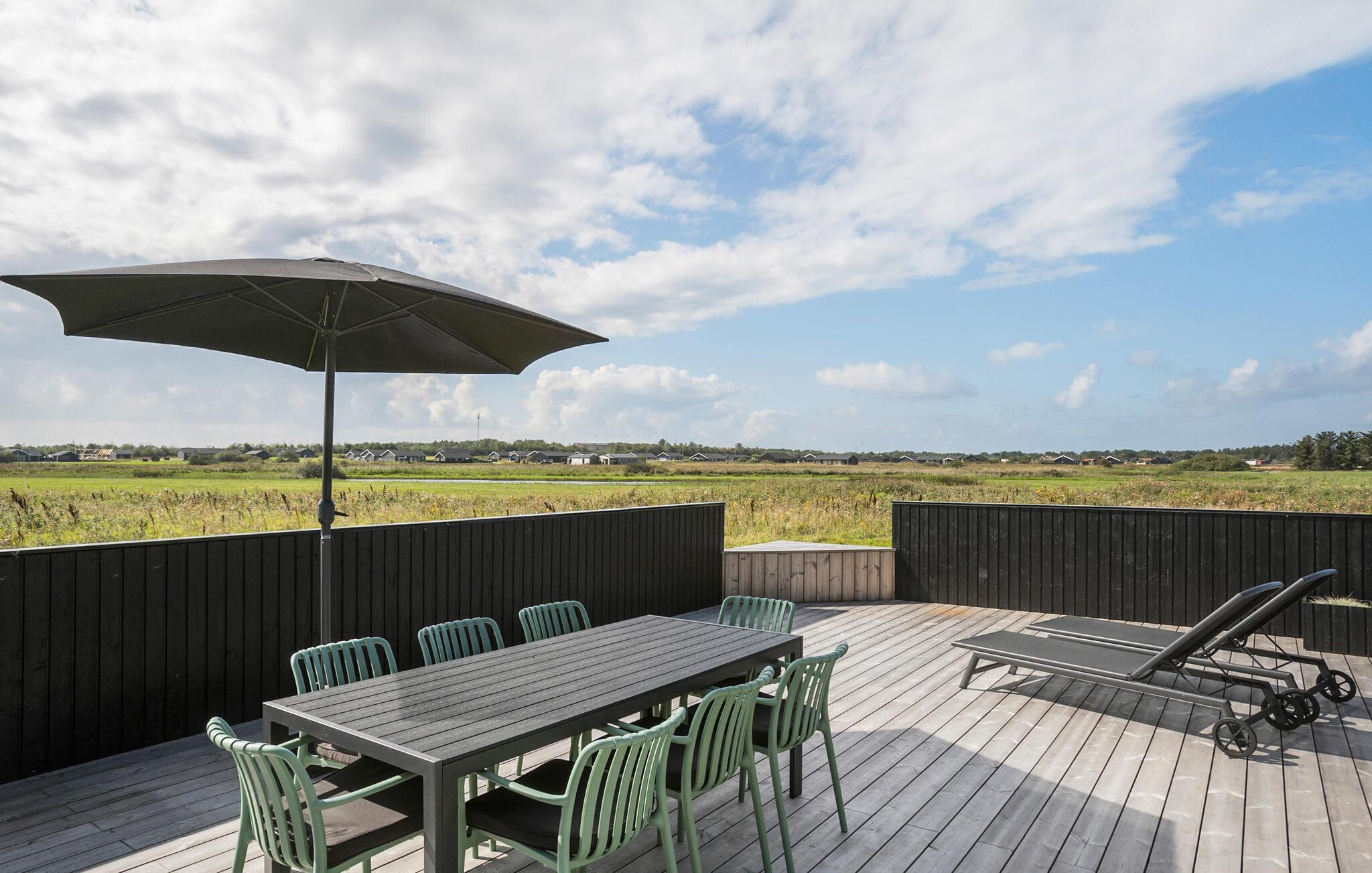Modernes Ferienhaus mit Sauna, Whirlpool und weiter Landschaft in Grønhøj Strand, Dänemark.