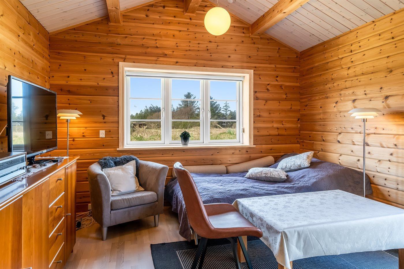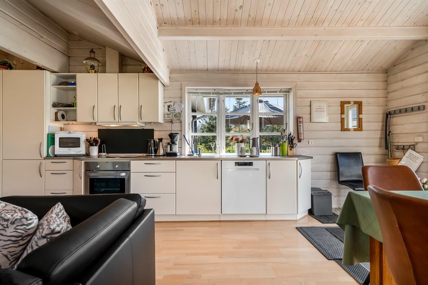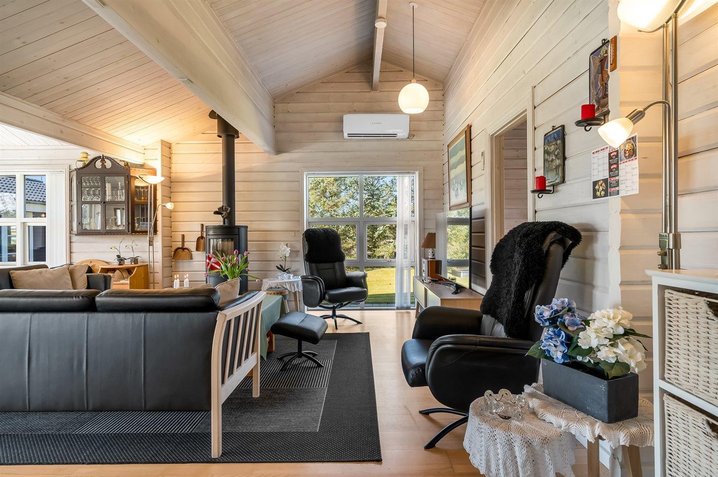 Dieses gemütliche Balkenferienhaus liegt auf einem Naturgrundstück - in einem ruhigen Gebiet mit unterschiedlicher Bepflanzung. Zum Haus gehören eine schöne, große Terrassenfläche sowie ein geräumiges Gästehaus, das mit einem kombiniertem Wohn-/Sc hlafzimmer und einem Badezimmer eingerichtet ist.