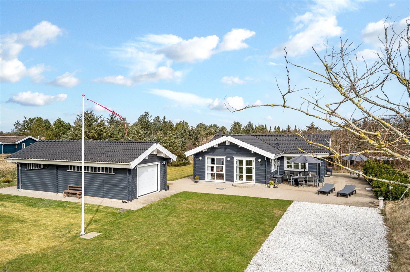 Gemütliches Balkenferienhaus in Løkken mit großem Naturgrundstück und Gästehaus, ideal für erholsame Ferien nahe dem Meer.