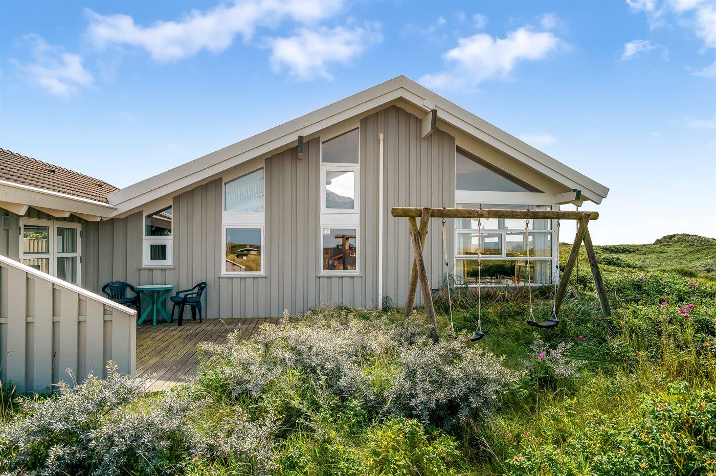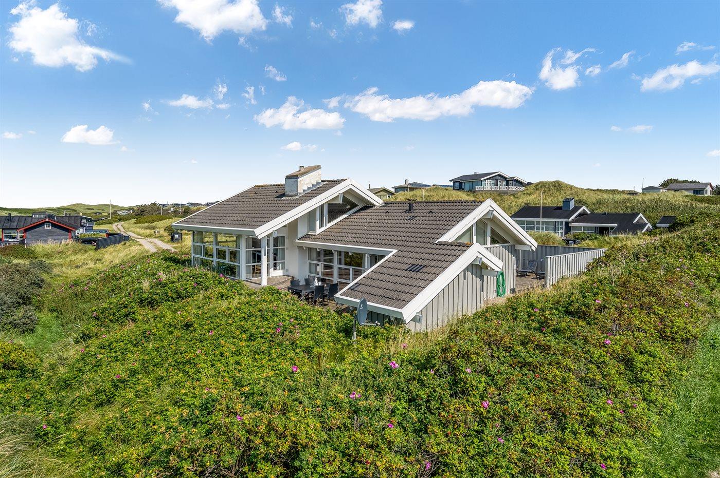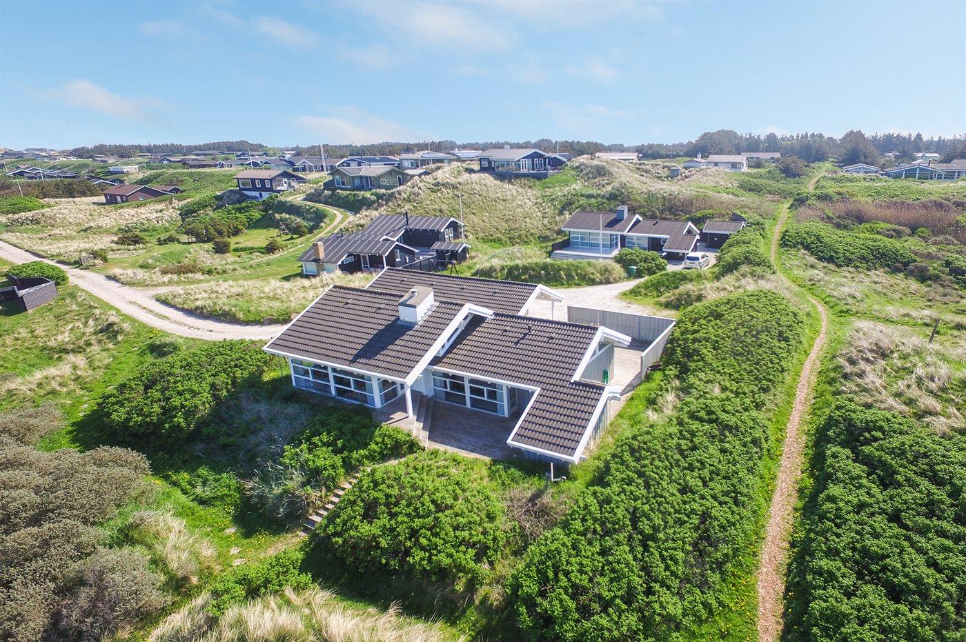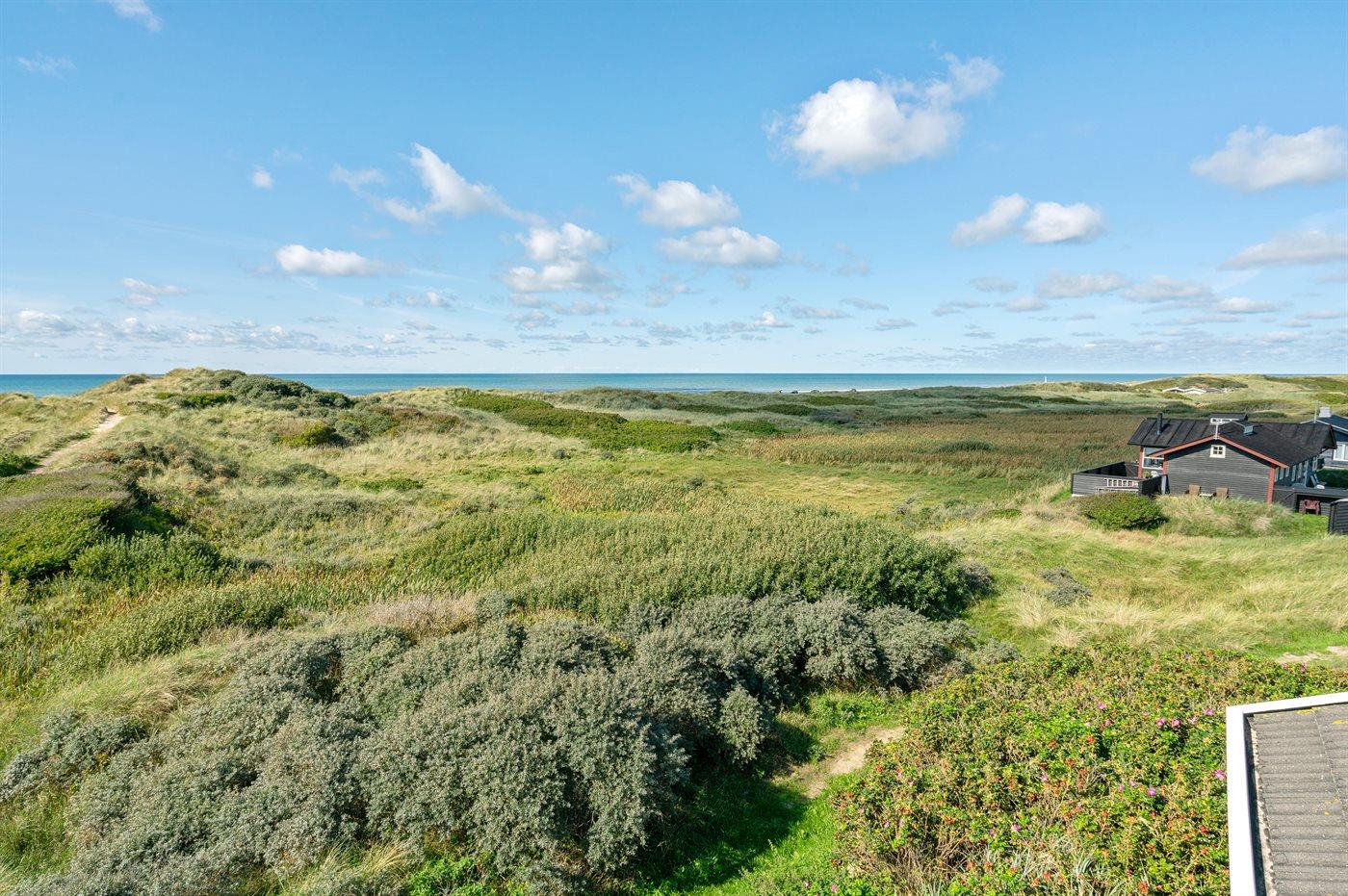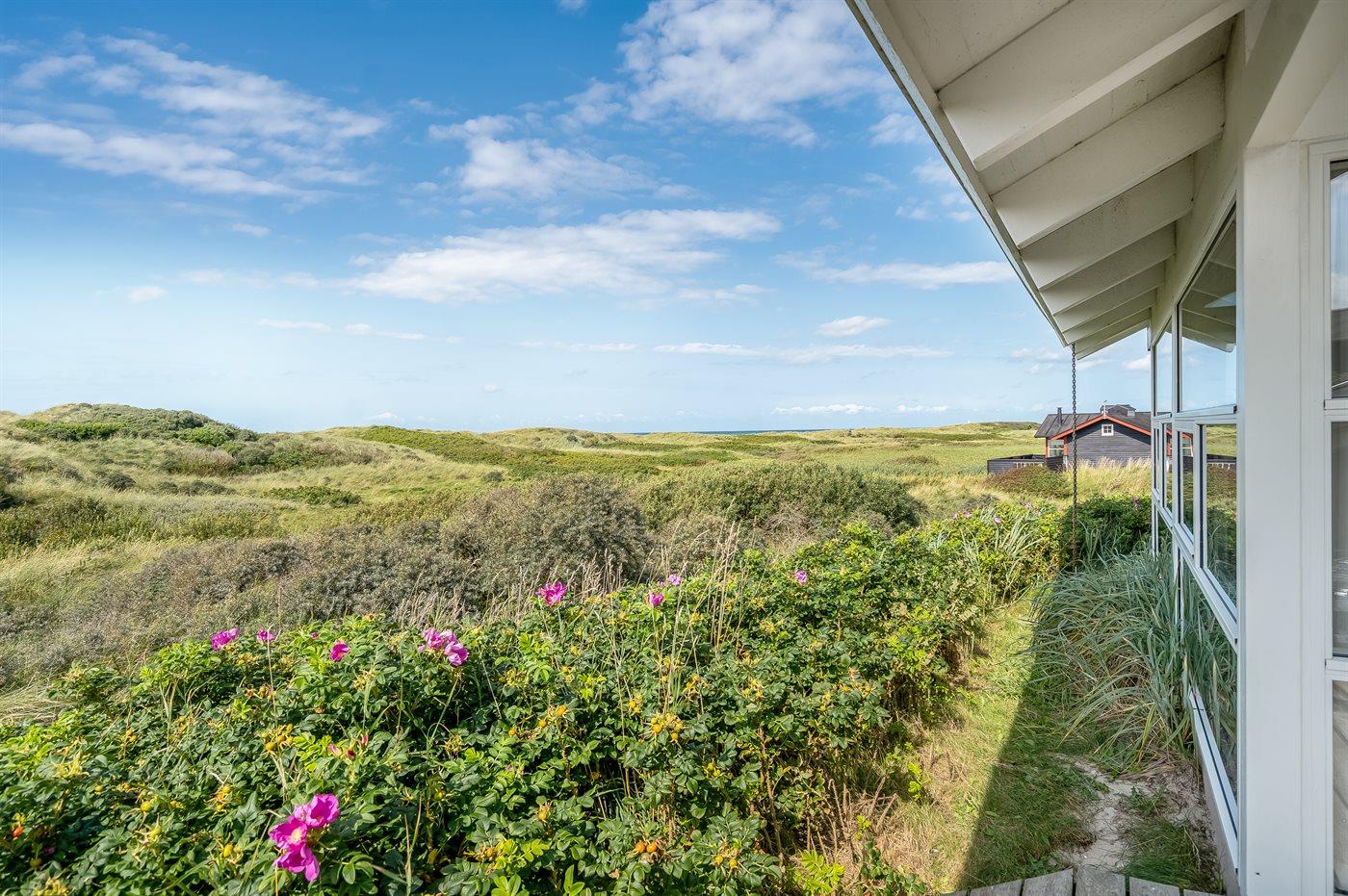 Dieses schöne Ferienhaus ist in versetzten Ebenen gebaut und im Wohnzimmer gibt es ein großes offenes Obergeschoss, wo die Kinder spielen können, während die Erwachsenen es sich im Wohnzimmer oder in der Küche gemütlich machen. Das Haus hat eine ganz einmalige Lage in der ersten Dünenreihe und am Ende einer Sackgasse, auf einem sehr großen und leicht hügeligen Dünengrundstück. Von hier aus führt ein Pfad direkt an den schönen Strand der Nordsee und sowohl vom Haus als auch vom Grundstück aus hat man einen herrlichen Blick auf die Nordsee und die faszinierende Dünenlandschaft. Vom höchsten Punkt der Dünen aus gibt es außerdem einen 180-Grad-Blick über die Bucht ”Jammerbugten”.