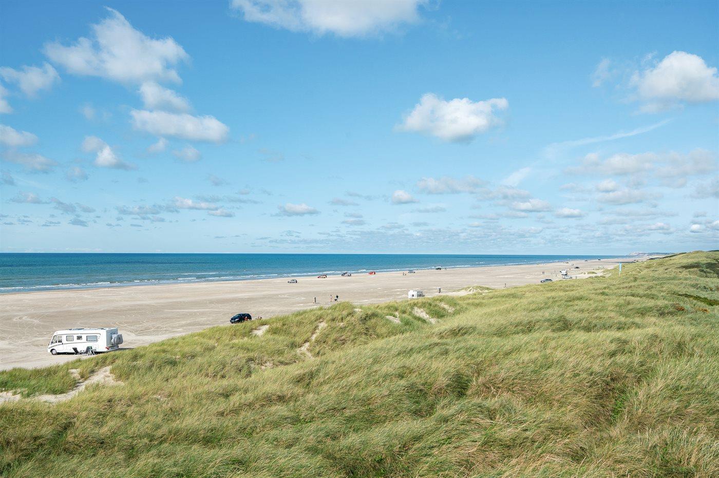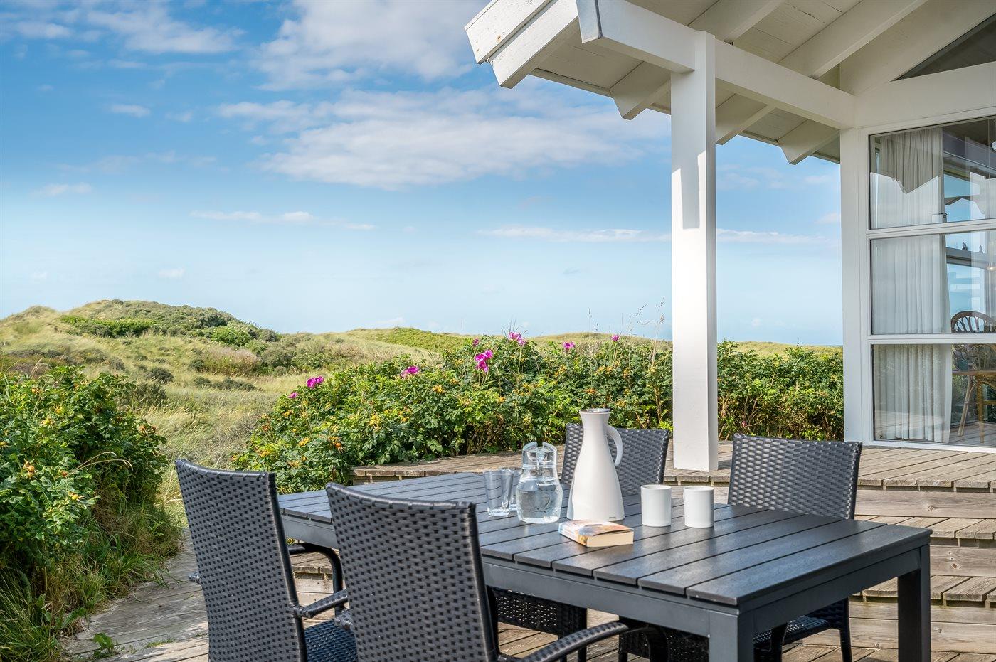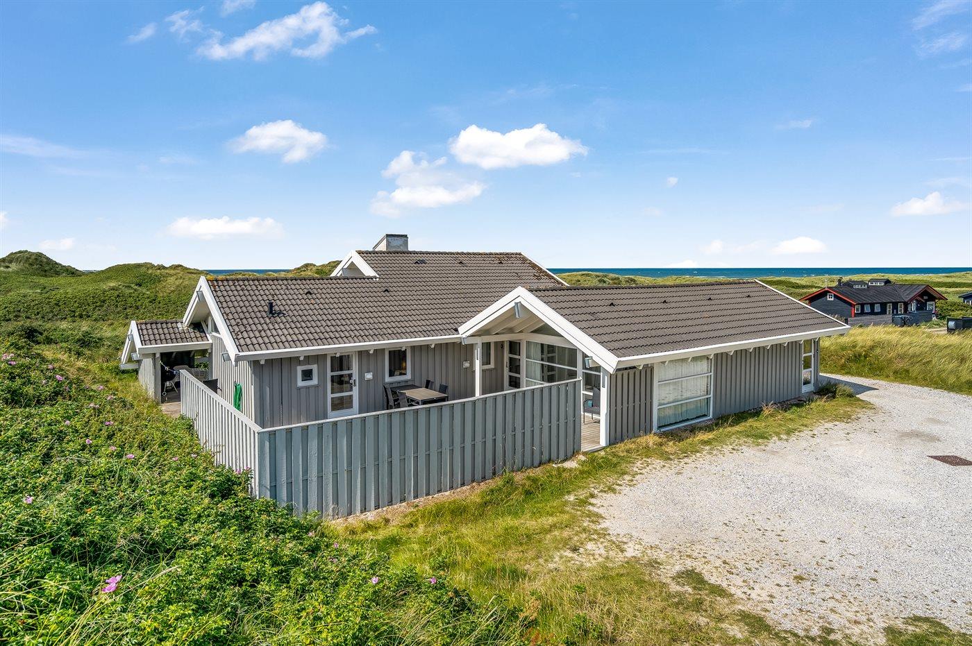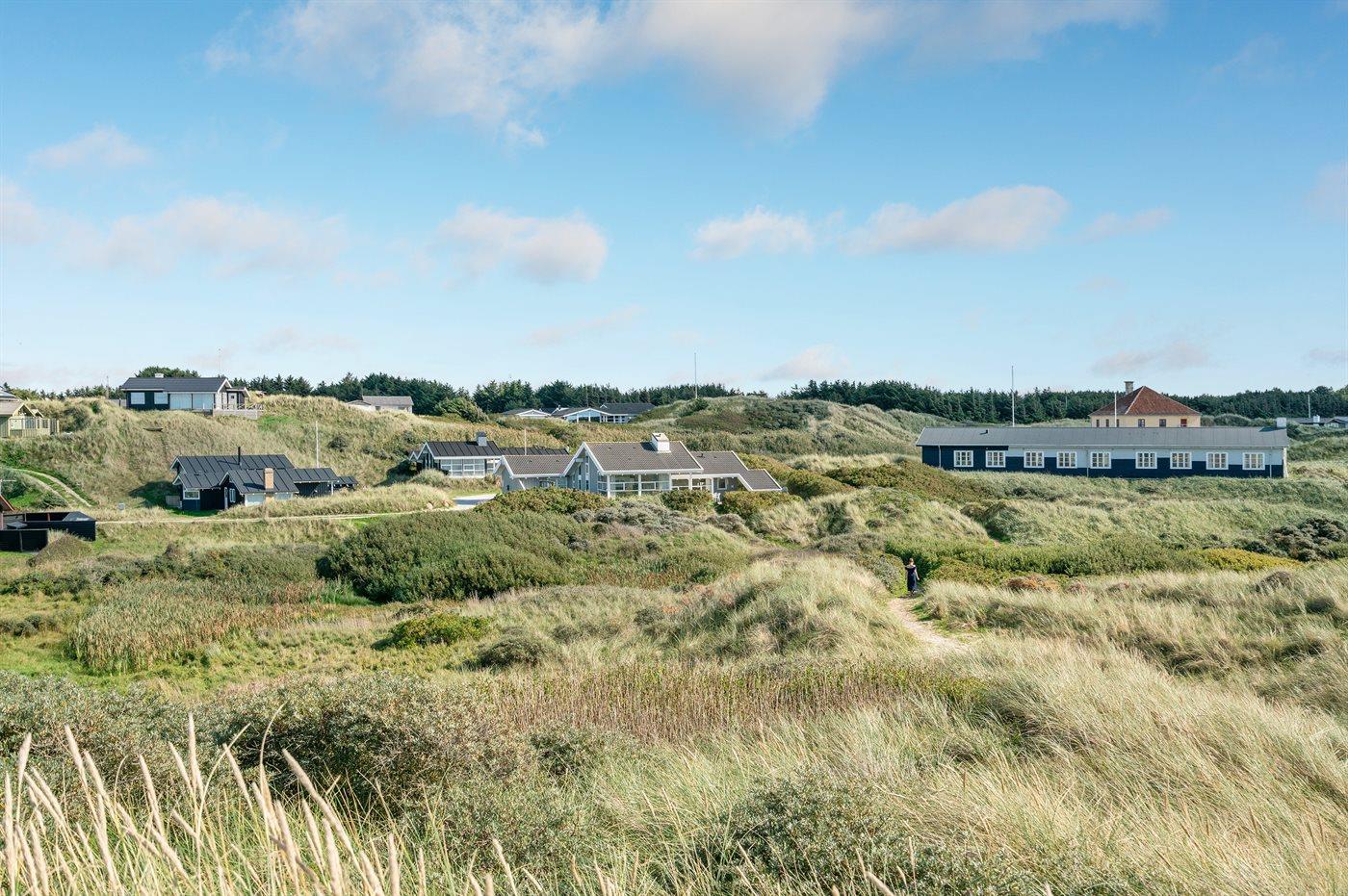 Dieses schöne Ferienhaus ist in versetzten Ebenen gebaut und im Wohnzimmer gibt es ein großes offenes Obergeschoss, wo die Kinder spielen können, während die Erwachsenen es sich im Wohnzimmer oder in der Küche gemütlich machen. Das Haus hat eine ganz einmalige Lage in der ersten Dünenreihe und am Ende einer Sackgasse, auf einem sehr großen und leicht hügeligen Dünengrundstück. Von hier aus führt ein Pfad direkt an den schönen Strand der Nordsee und sowohl vom Haus als auch vom Grundstück aus hat man einen herrlichen Blick auf die Nordsee und die faszinierende Dünenlandschaft. Vom höchsten Punkt der Dünen aus gibt es außerdem einen 180-Grad-Blick über die Bucht ”Jammerbugten”.