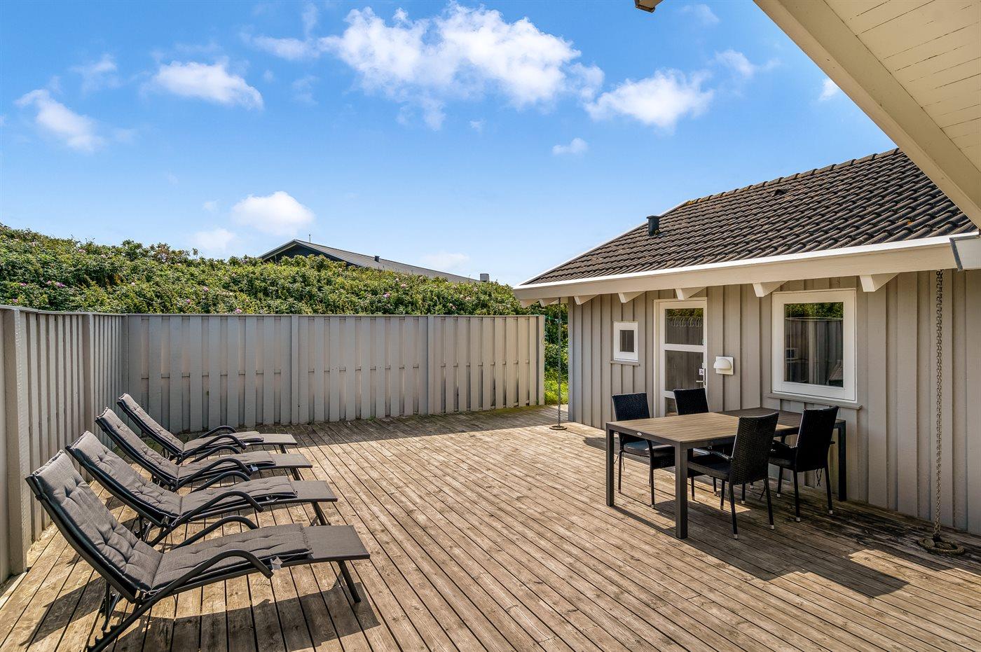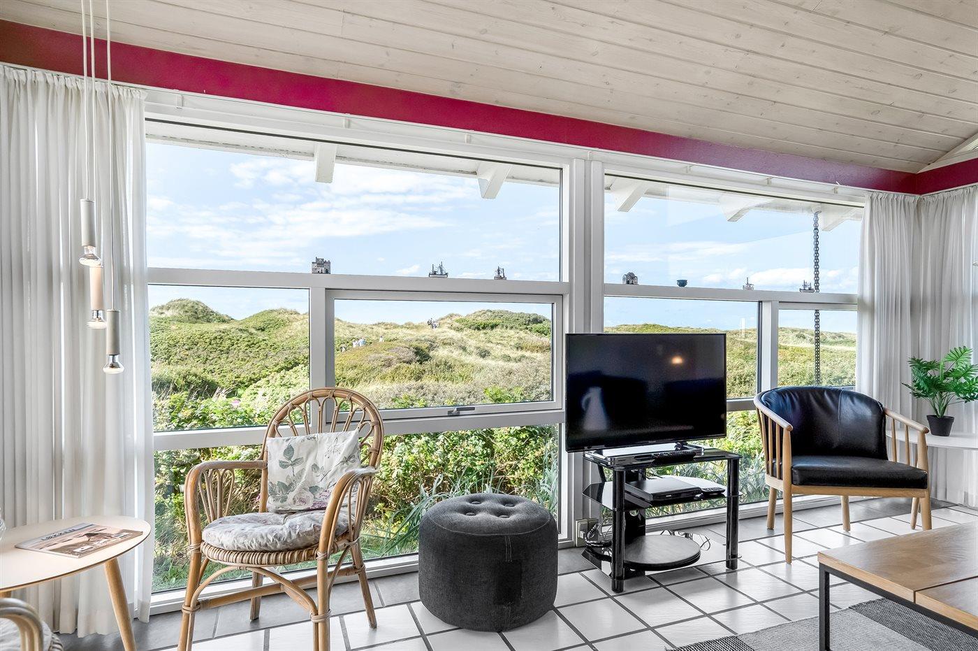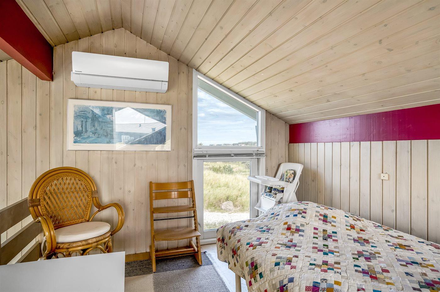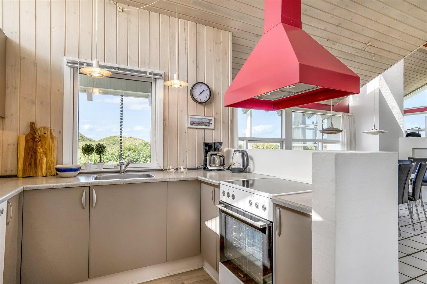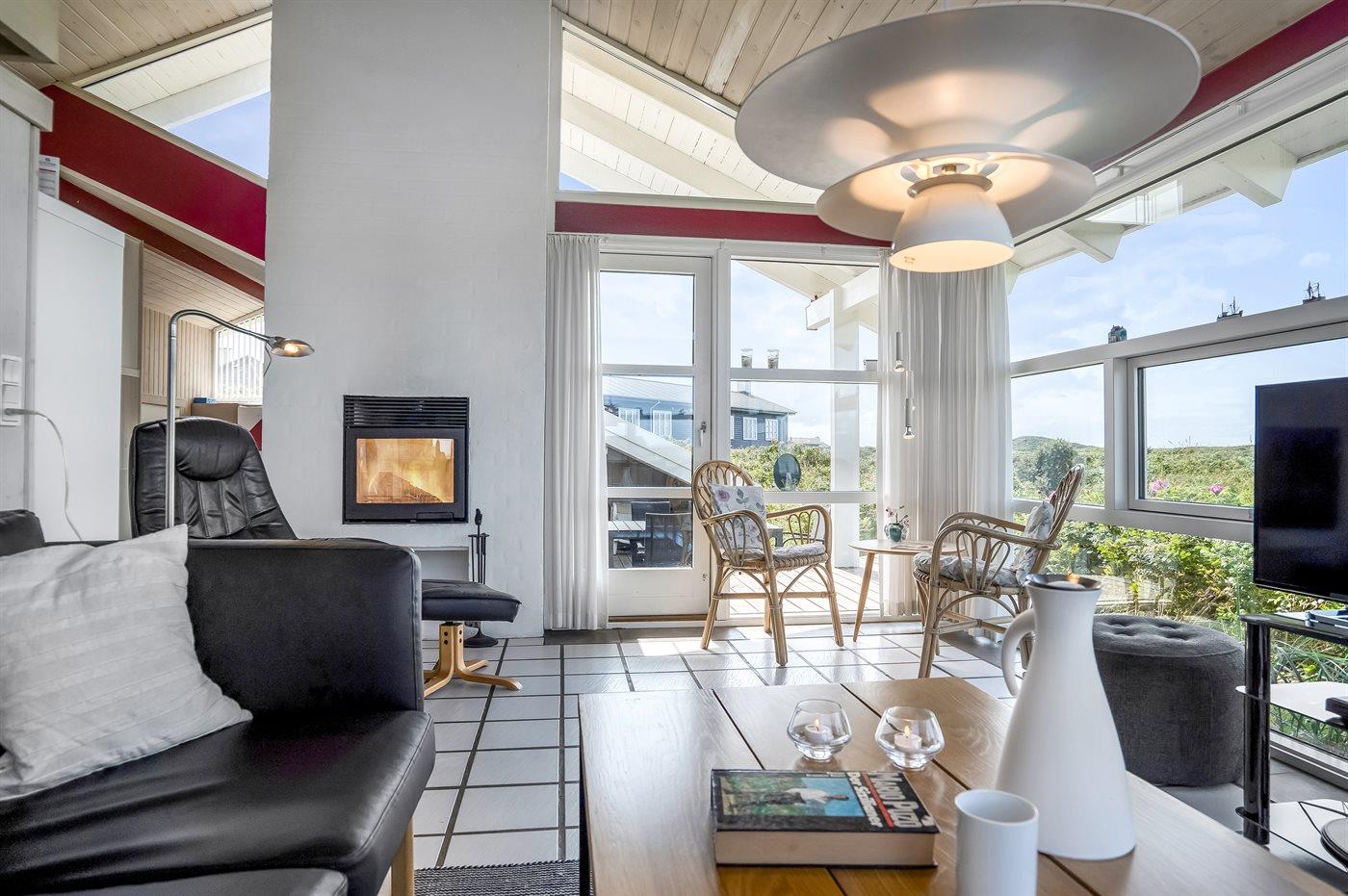 Dieses schöne Ferienhaus ist in versetzten Ebenen gebaut und im Wohnzimmer gibt es ein großes offenes Obergeschoss, wo die Kinder spielen können, während die Erwachsenen es sich im Wohnzimmer oder in der Küche gemütlich machen. Das Haus hat eine ganz einmalige Lage in der ersten Dünenreihe und am Ende einer Sackgasse, auf einem sehr großen und leicht hügeligen Dünengrundstück. Von hier aus führt ein Pfad direkt an den schönen Strand der Nordsee und sowohl vom Haus als auch vom Grundstück aus hat man einen herrlichen Blick auf die Nordsee und die faszinierende Dünenlandschaft. Vom höchsten Punkt der Dünen aus gibt es außerdem einen 180-Grad-Blick über die Bucht ”Jammerbugten”.