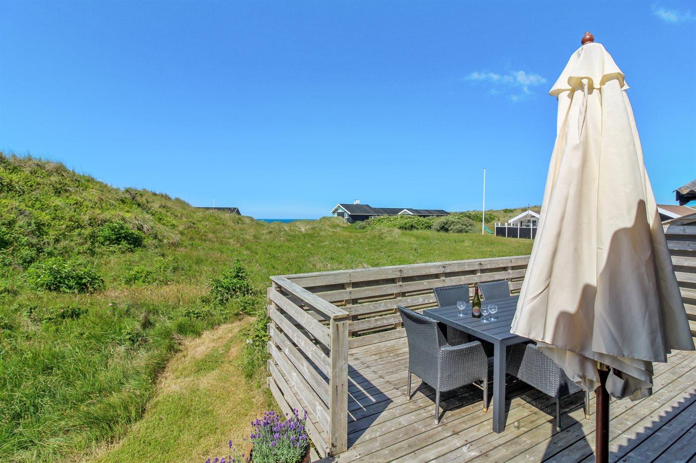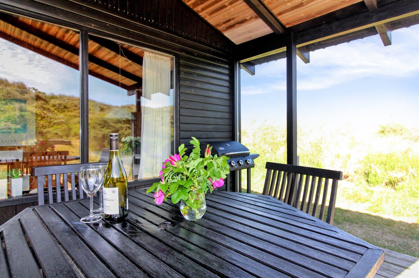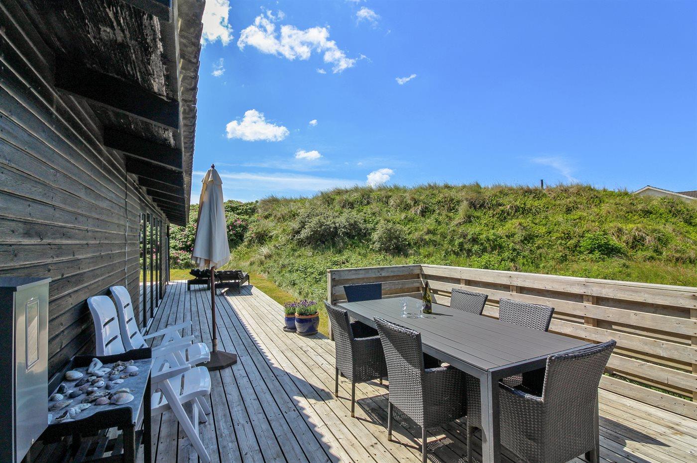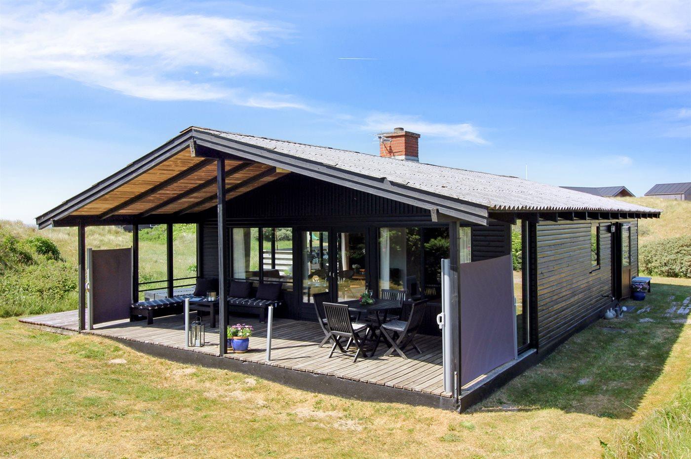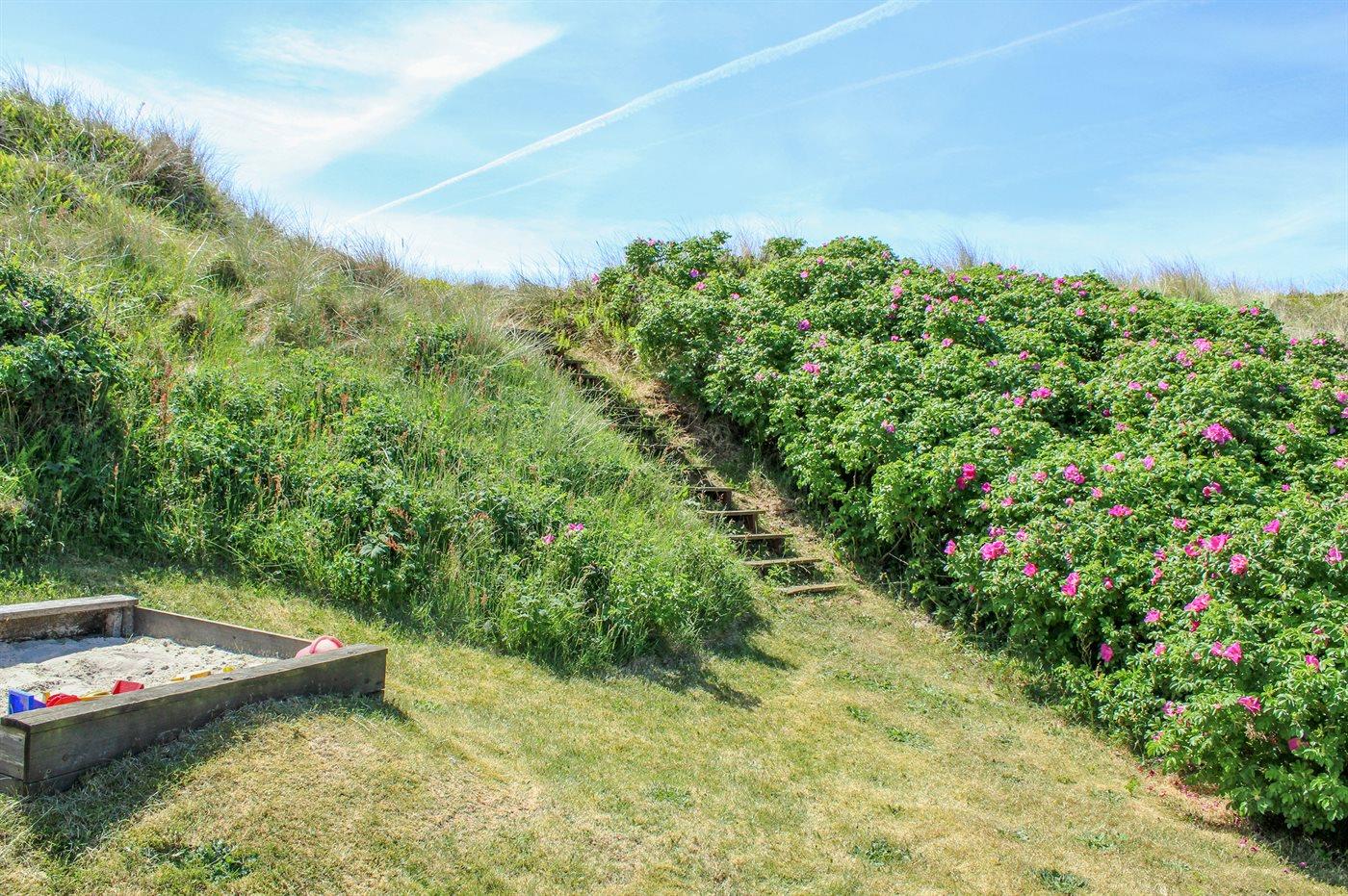 Die Ferienunterkunft liegt auf einem 2500 m² großen Dünengrundstück. Die Entfernung zum Meer beträgt 300 m. Die nächste Einkaufsmöglichkeit liegt 800 m entfernt. Es steht ein 45 m² Terrassenareal zur Verfügung. Außerdem gibt es 24 m² überdachte Terrasse. Geräteraum. Sandkasten. Es steht ein Grill zur Verfügung. Es steht ein Carport zur Verfügung. Parkplatz auf dem Grundstück.