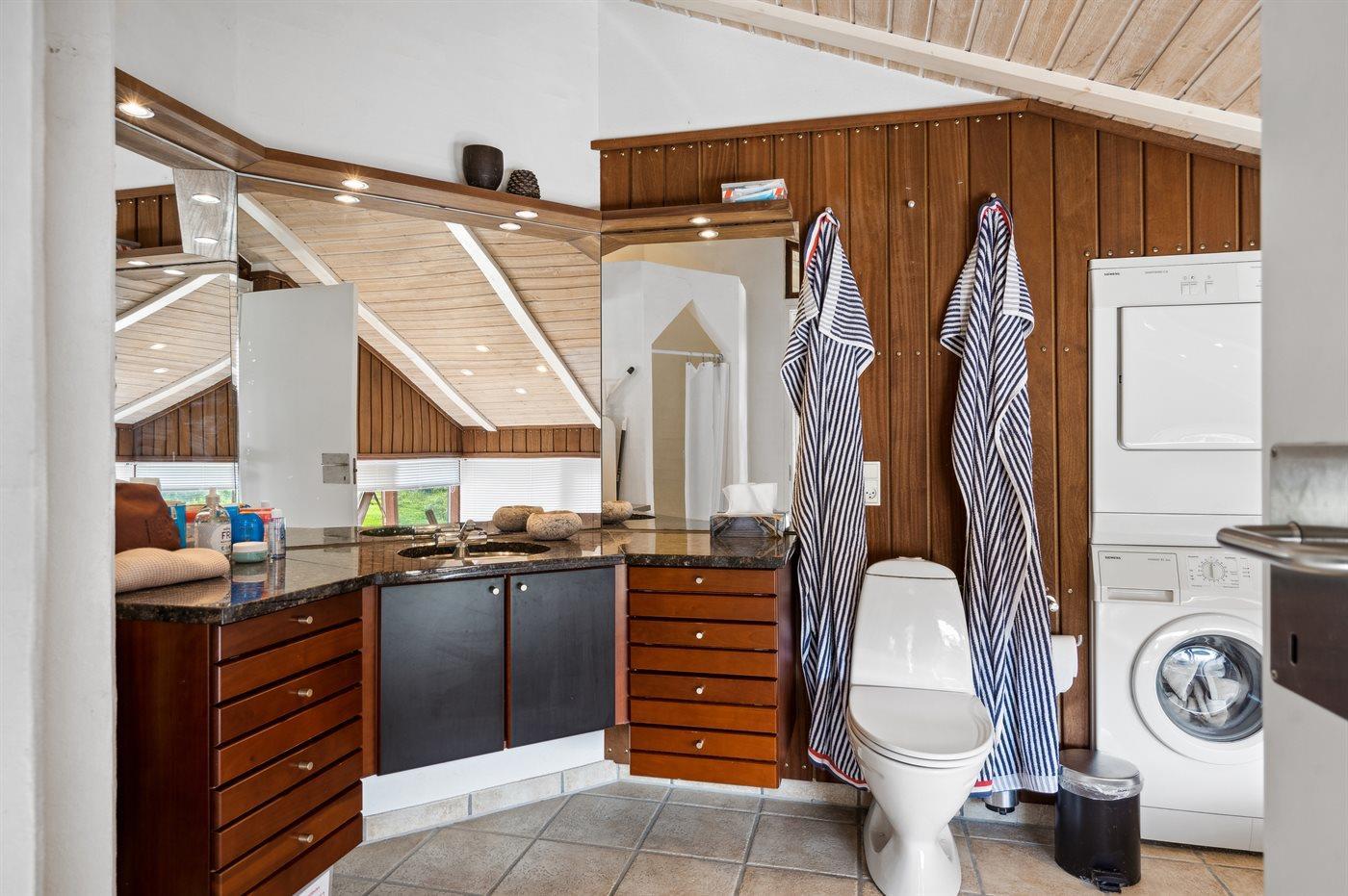 Es gibt 2 Badezimmer mit Duschnische und 2 Toiletten. Fußbodenheizung in 2 Badezimmern. Es steht eine Sauna zur Verfügung in der Sie sich so richtig entspannen können.