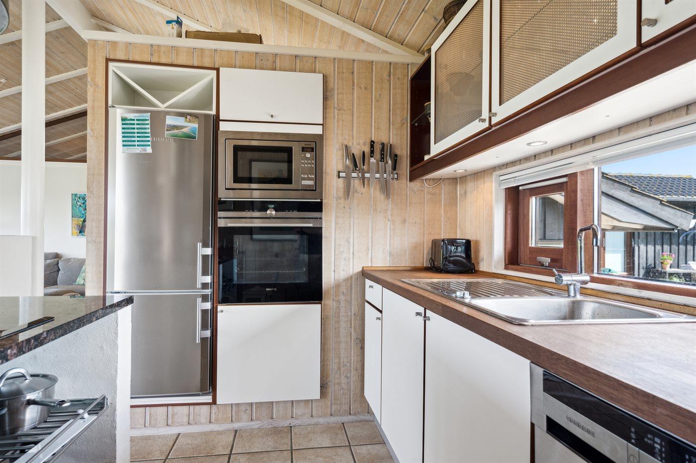 Die Küche ist mit Kühlschrank ausgestattet. Außerdem gibt es 4 Keramik-Kochfelder, Umluftofen, Mikrowelle sowie Geschirrspüler.