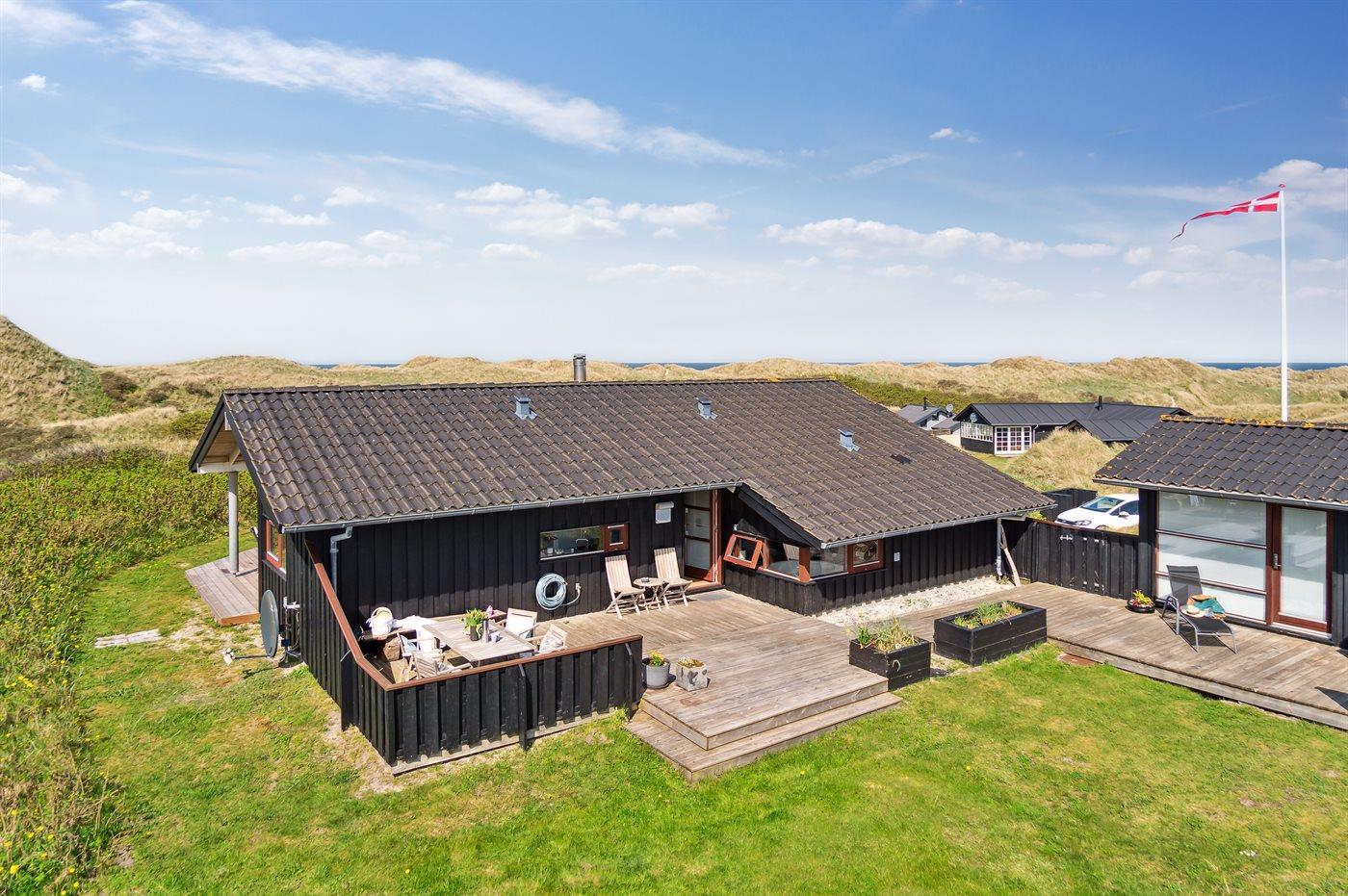 Ein schönes, einladendes Ferienhaus mit einer phantastischen Lage - unmittelbar hinter den Dünen am schönen Strand der Nordsee. Das Haus liegt auf einem leicht hügeligen Grundstück in einem naturschönen und beliebten Gebiet – dicht an einer Ferienanlage mit Badeland und verschiedenen Aktivitäten.