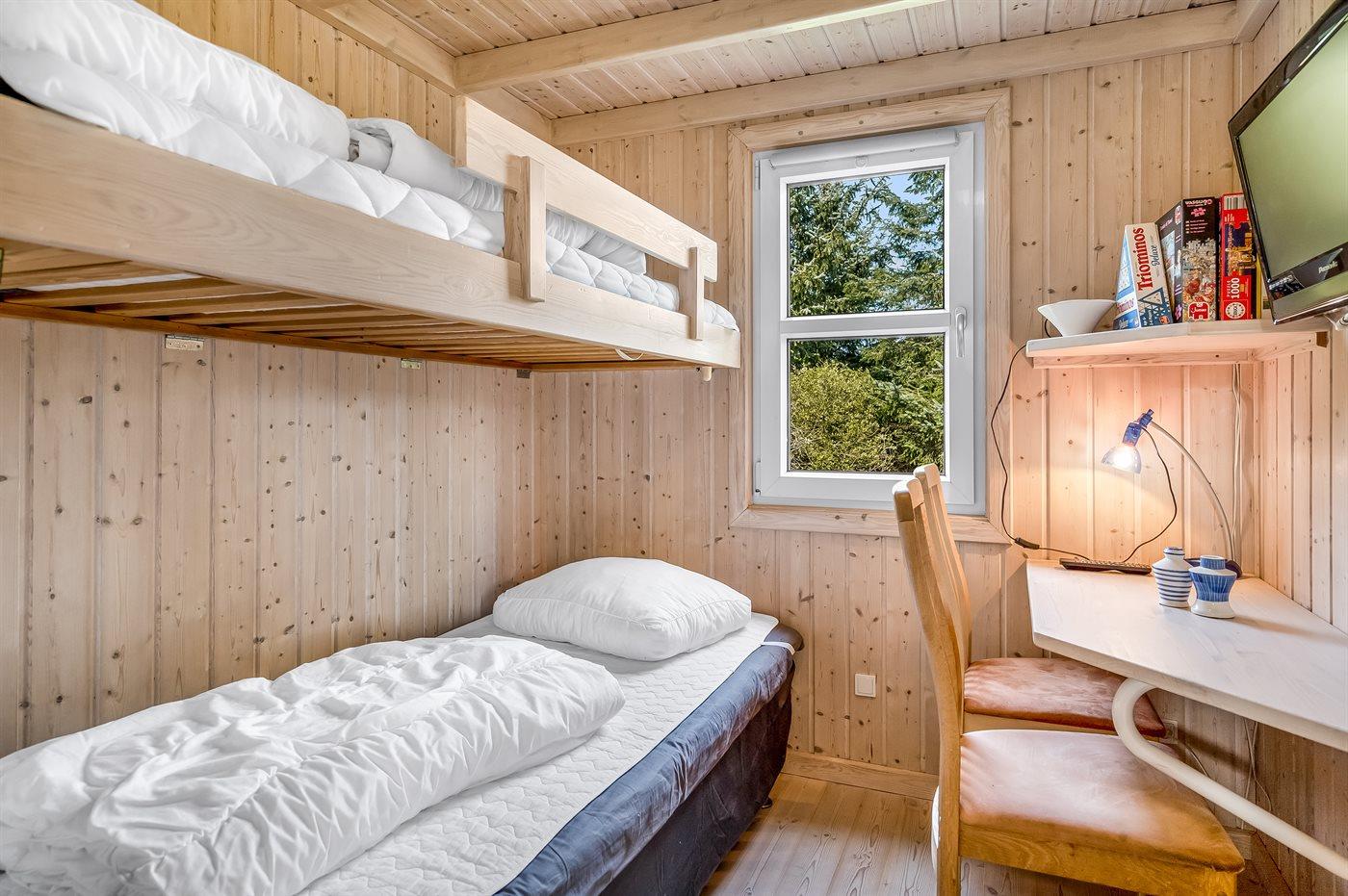 Die Schlafplätze verteilen sich auf 3 Schlafräume. 4 Schlafplätze in Doppelbetten. 2 Schlafplätze in einem Etagenbett. 1 von diesen Schlafplätzen befindet sich im offenen Obergeschoss. Ferner steht ein Kinderbett zur Verfügung.