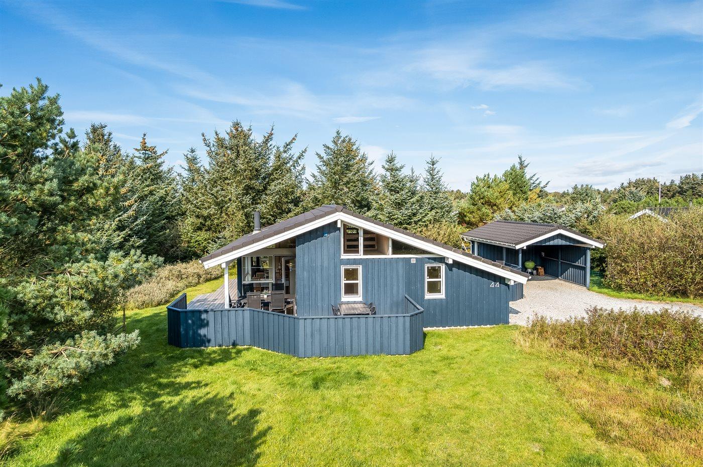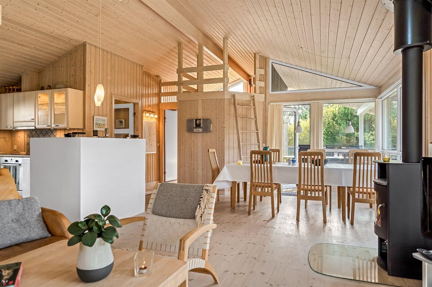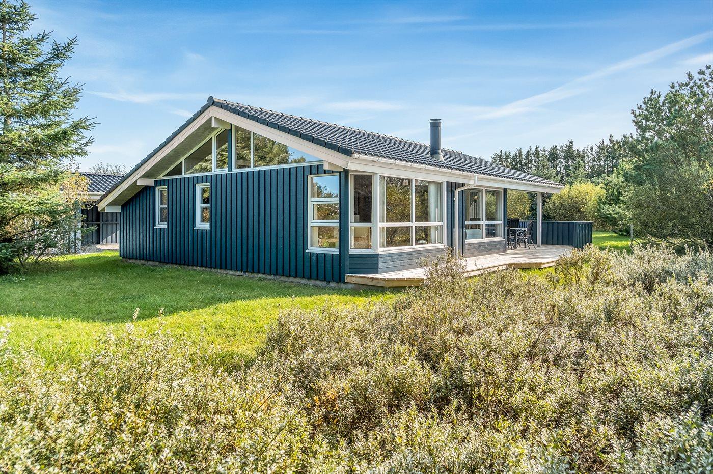 Ein schönes und luxuriöses Ferienhaus aus Holz, 2004 gebaut, in einer Sackgasse gelegen. Zum Haus gehören gute Terrassen mit Windschutzzäunen in Richtung Osten, Süden und Westen. Im Ferienhausgebiet gibt es eine gemeinsame Petanquebahn und Schaukel. Ein wirklich schönes Ferienhaus in einem Gebiet mit vielen Aktivitätsmöglichkeiten. Der Grund ist teilweise eingezäunt.