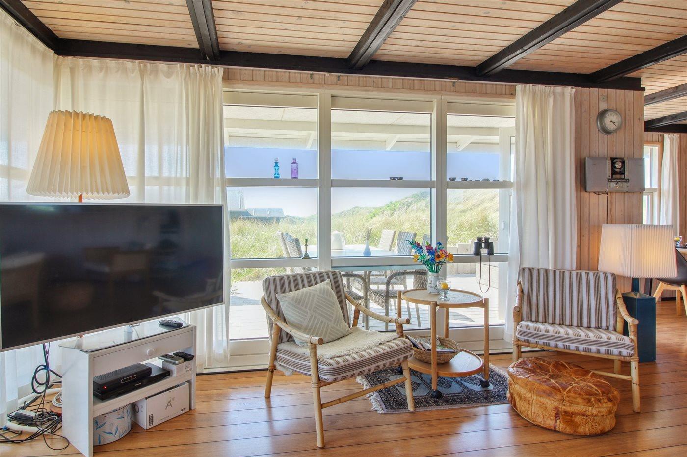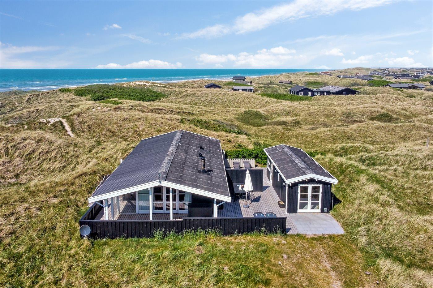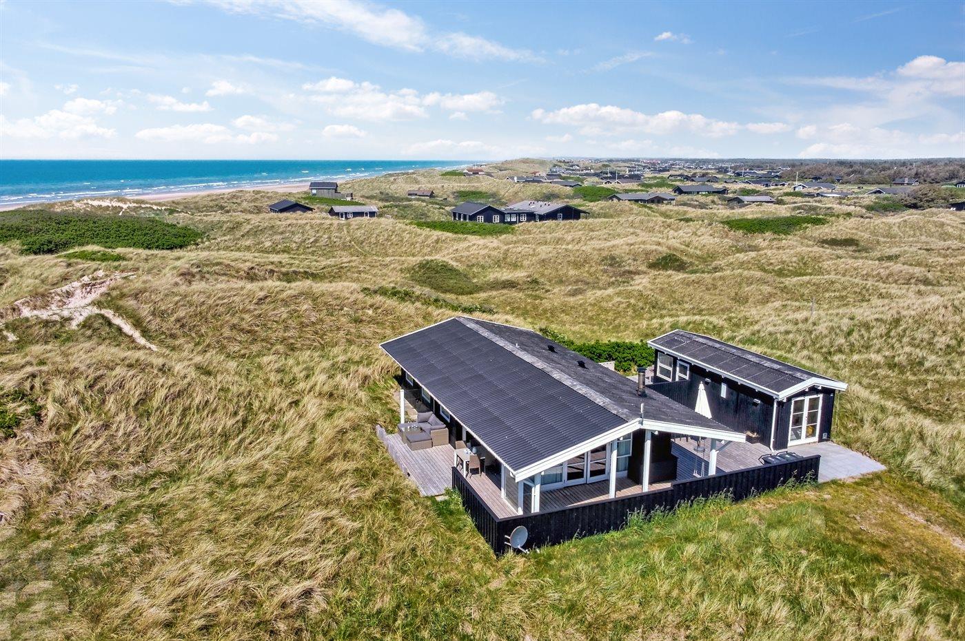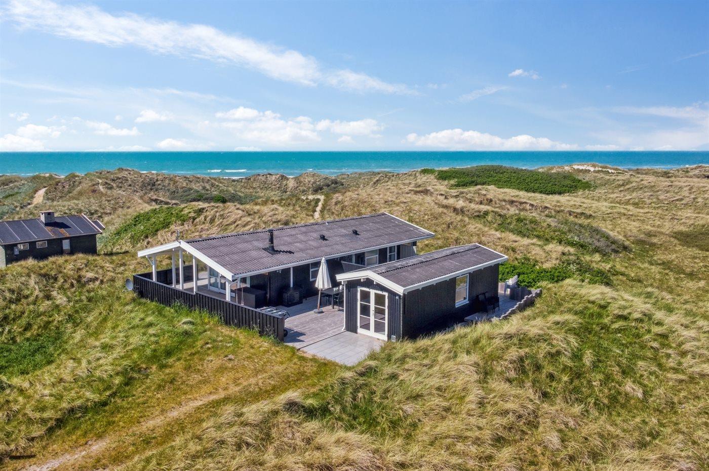 Modernes Ferienhaus in Dünenlandschaft mit Meerblick und Sauna, ideal für entspannte Tage nahe Løkken.