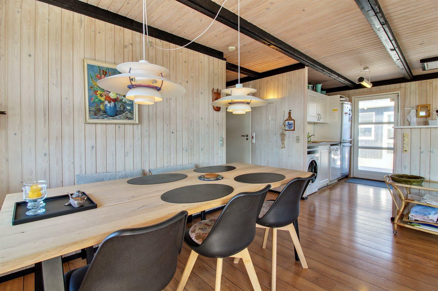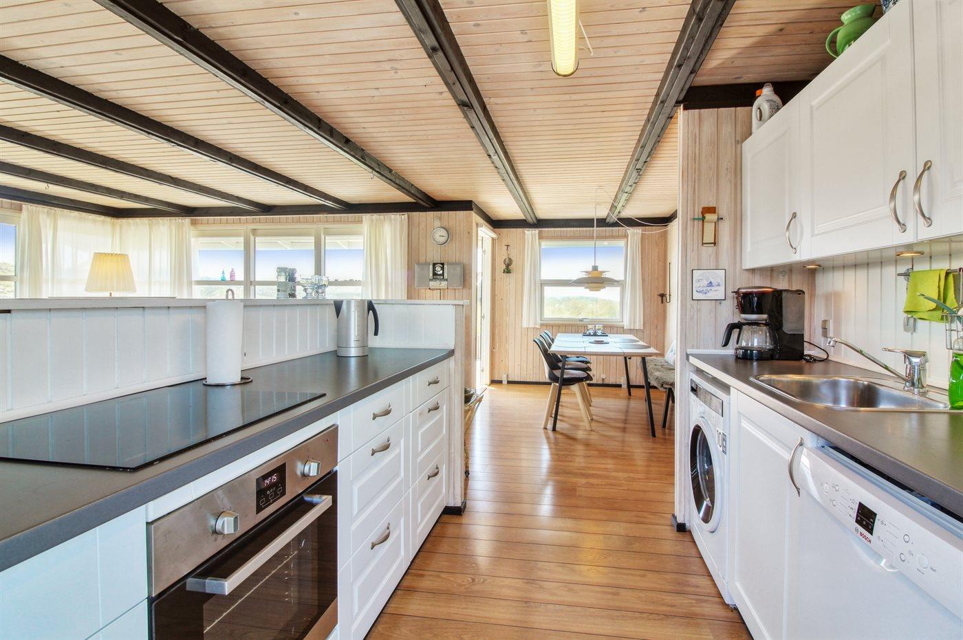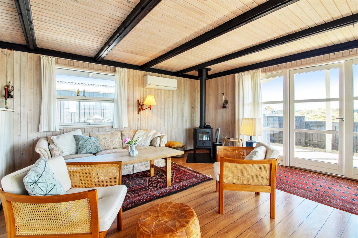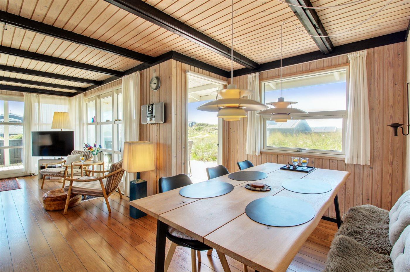In der Dünenlandschaft südlich von Løkken finden Sie dieses Ferienhaus, laufend renoviert. Zwischen den Dünen gibt es einen Fußweg zum Wasser sowie einen Natursandkasten. Zum Haus gehört ein großer abgeschirmter nach Südosten gerichteter Sonnenhof und nach Südwesten gerichtete, überdachte Terrasse mit diversen Gartenmöbeln. Besonders vom Grundstück haben Sie eine schöne Aussicht über die Dünen, das Ferienhausgebiet und die umgebene Landschaft.