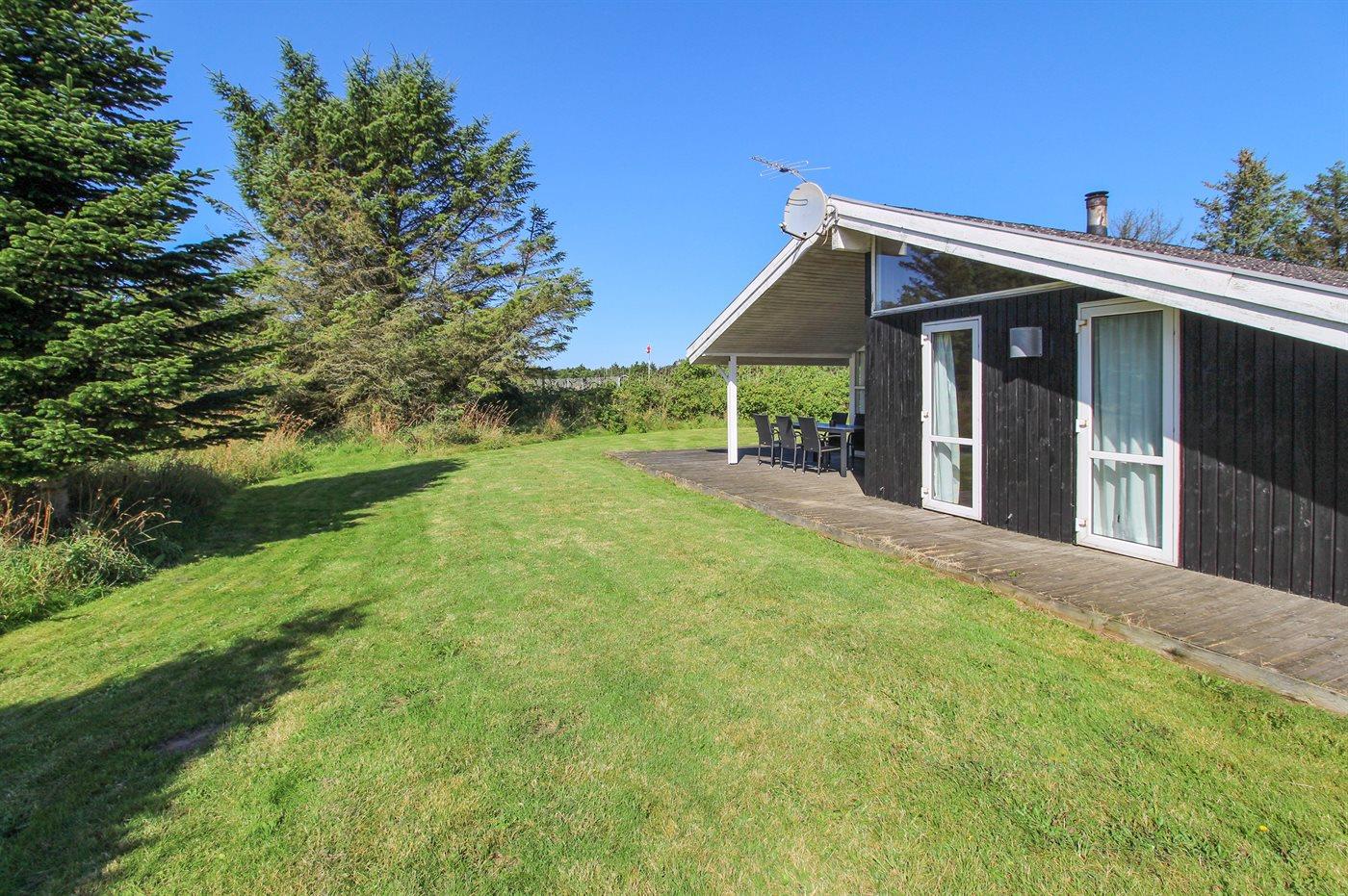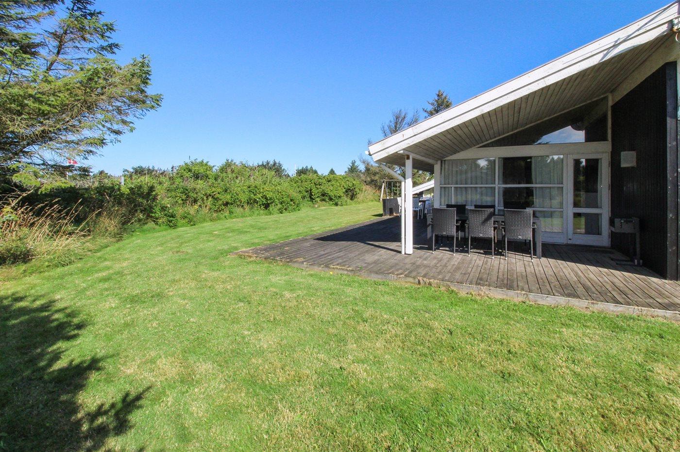 Dieses schöne und geräumige Ferienhaus liegt auf einem abgeschirmten Grundstück, das an eine gemeinsame Grünfläche angrenzt, in einem ruhigen Ferienhausgebiet - nicht weit vom schönen Strand an der Nordsee entfernt.