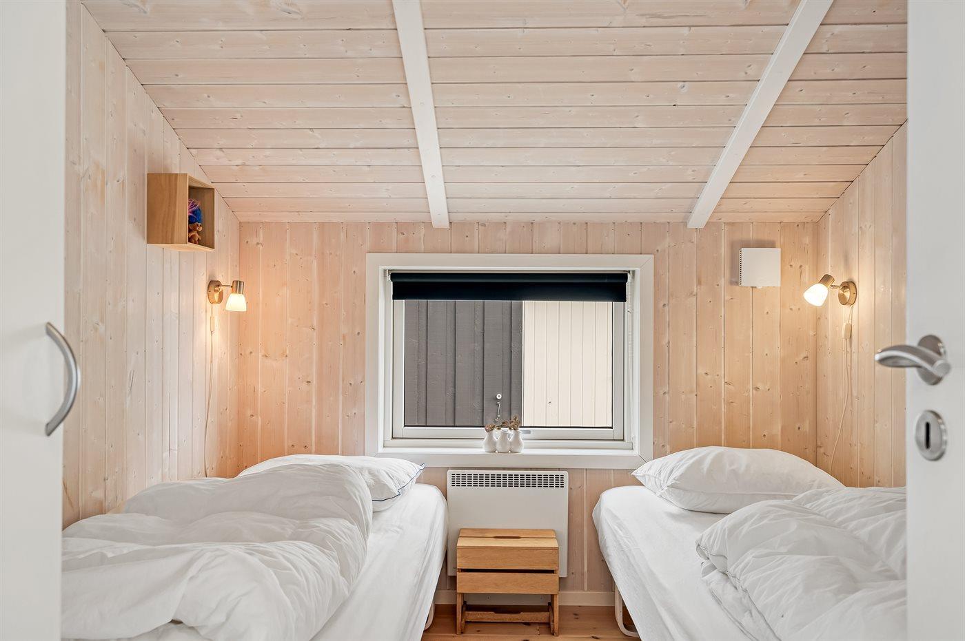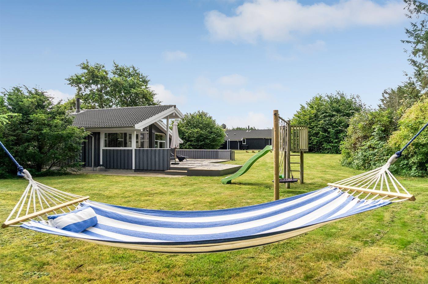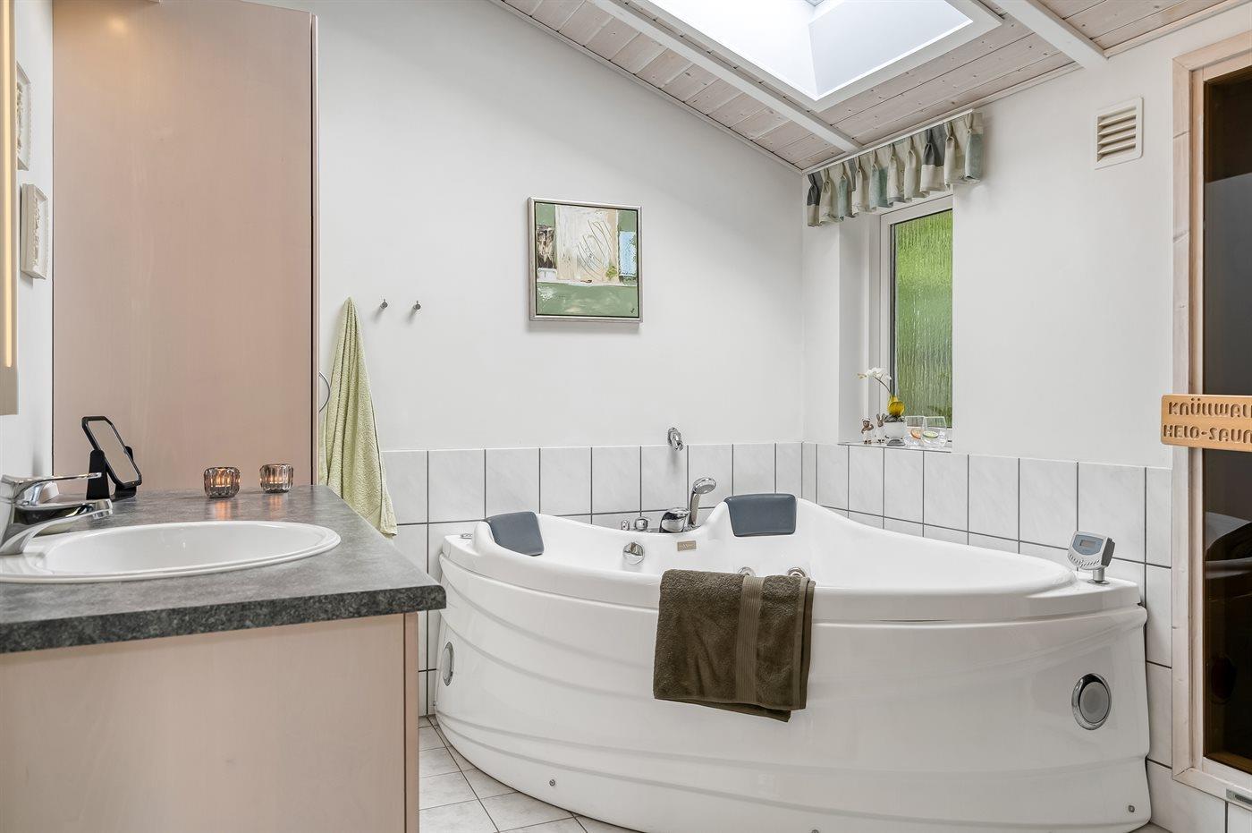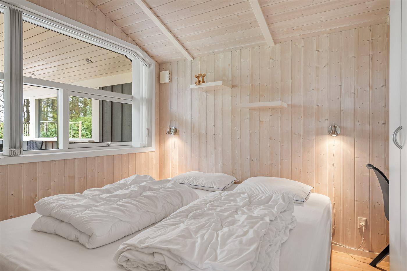Sehr hübsches und gut eingerichtetes Luxusferienhaus aus Holz, 2007 mit u. a. Whirlpool und Sauna gebaut. Das Haus liegt auf einem großen Naturgrundstück - nur 700 m vom breiten Sandstrand bei Grønhøj entfernt. Zum Haus gehören gutes sowohl offenes als auch überdachtes Terrassenareal mit Gartenmöbeln. Innen gibt es überall helle Holzwände und -decken sowie Holzböden, jedoch beheizten Klinkerboden im Badezimmer und in der Gästetoilette. Das Badezimmer ist mit Duschnische, Fußbodenheizung, 2-Pers.-Whirlpool und Sauna sowie Waschmaschine eingerichtet. Hübsche, moderne Küche mit Geschirrspüler, Mikrowelle, Warmluftofen, Herd mit Ceran-Feld und Tiefkühlgerät. Schönes Wohnzimmer mit Kaminofen, TV mit digitalem Satellitenanschluss, DVD-Spieler und CD-Spieler sowie Zutritt zur Terrasse. Die Schlafplätze des Hauses verteilen sich auf 3 Schlafzimmer: 2 mit Doppelbett und 1 mit 2 Einzelbetten. Ferner Alkoven mit 2 Schlafplätzen im Wohnzimmer. Kinderbett, Kinderhochstuhl, Sandkiste und Schaukel für die Kinder. Carport auf dem Grundstück. Wärmepumpe zur Verfügung. Ein sehr schönes und gut eingerichtetes Ferienhaus, das sowohl für 1 als auch 2 Familien geeignet ist.