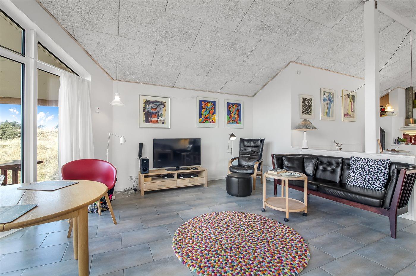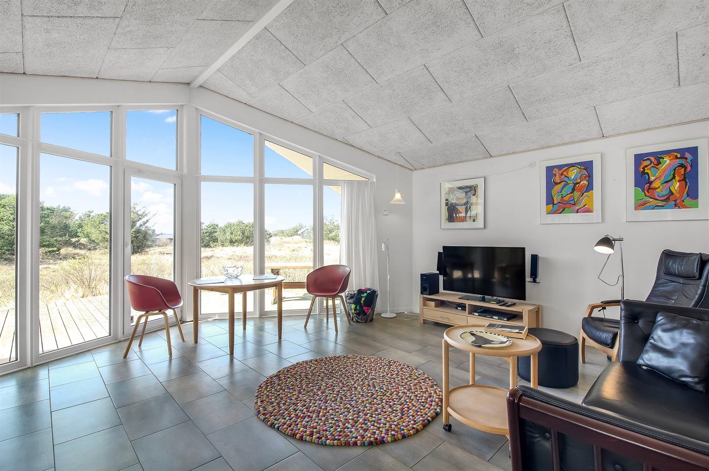 Dieses erstklassige Ferienhaus liegt auf einem großen Grundstück nicht weit vom Meer entfernt. Die Einrichtung des Hauses ist energiegerecht mit Wärmepumpe sowie Solaranlage für die Fußbodenheizung in den Badezimmern und für das Gebrauchswasser. Das Haus tritt hell und freundlich hervor mit schrägenden Holzdecken. Im Wohnzimmer gibt es Aussicht auf das Grundstück durch die große Fensterfront.