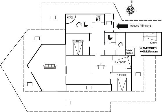 Für den aktiven Urlaub gibt es einen Aktivitätsraum mit eigenem Eingang. Hier finden Sie 2 Schlafplätze auf Doppelschlafcouch. Offenes Obergeshoss mit 2 Matratzen für Kinder/Jugendliche.
