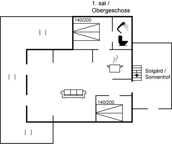 Die Schlafplätze verteilen sich auf 2 Schlafräume. 4 Schlafplätze in Doppelbetten.