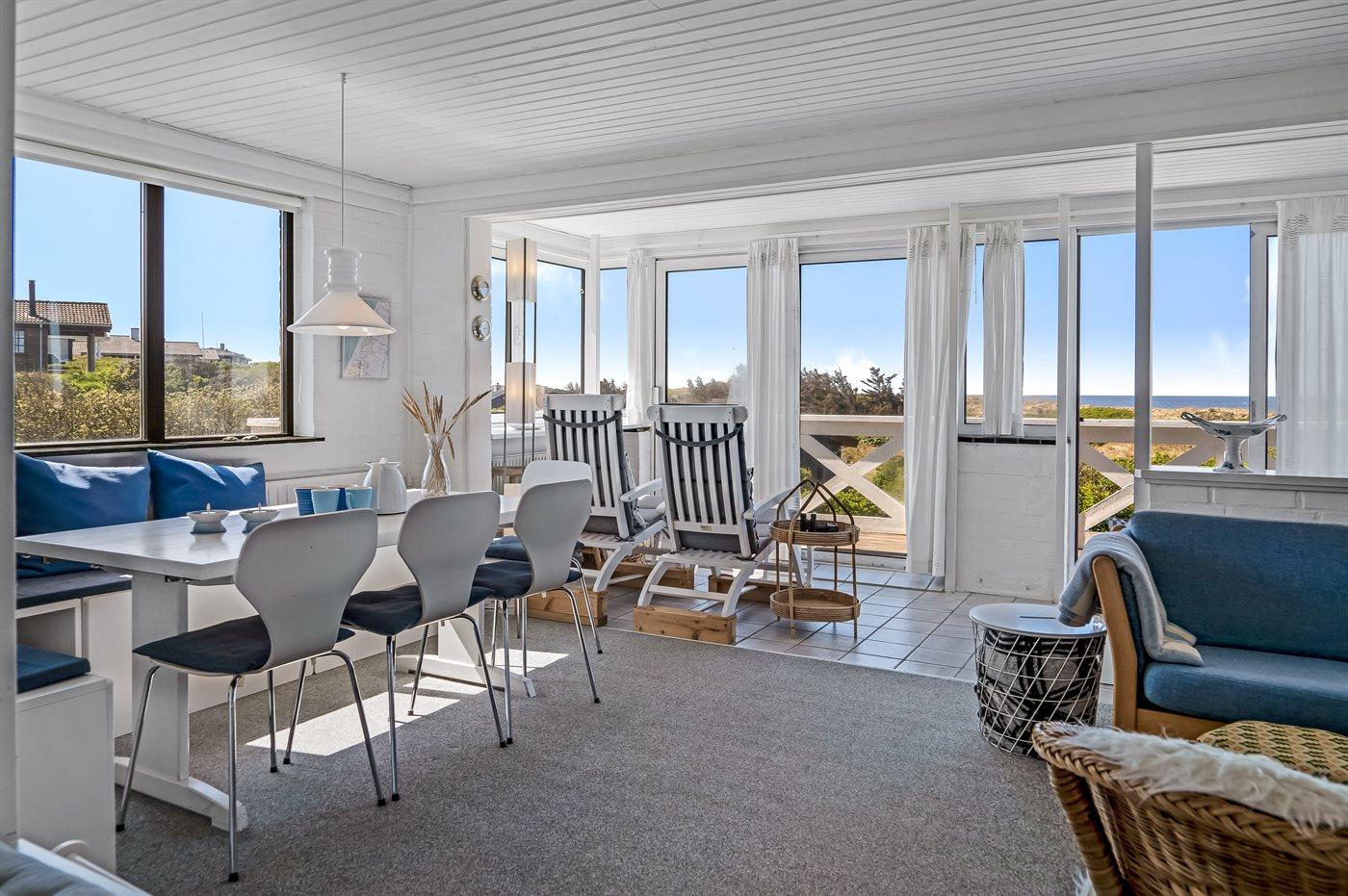 Dicht am schönen Strand der Nordsee liegt dieses nette Ferienhaus - direkt an der Zufahrt zum Strand. Sowohl vom Haus als auch von der Terrasse können Sie die herrliche Aussicht auf das Meer und die naturschöne Umgebung genießen. Die Wohnfläche befindet sich im Obergeschoss des Hauses.
