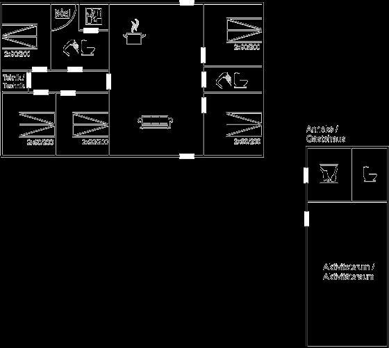Es gibt 2 Badezimmer mit Duschnische und 3 Toiletten, davon 1 Gästetoilette. Fußbodenheizung in 2 Badezimmern. In der infraroten Sauna können Sie sich so richtig entspannen.