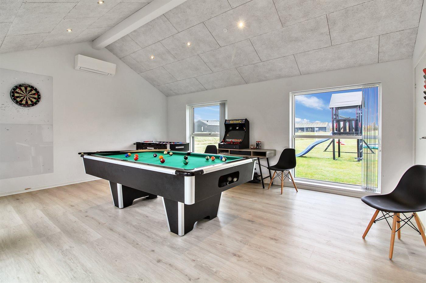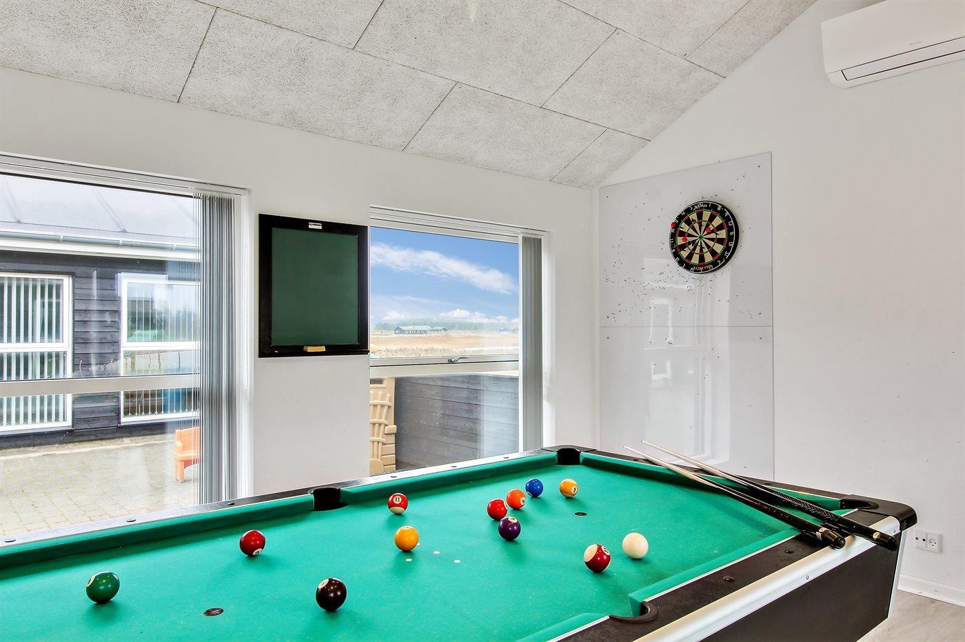 Hobbyraum mit: Billard. Tischtennis. Dart. Tischfußball. Spielautomat.