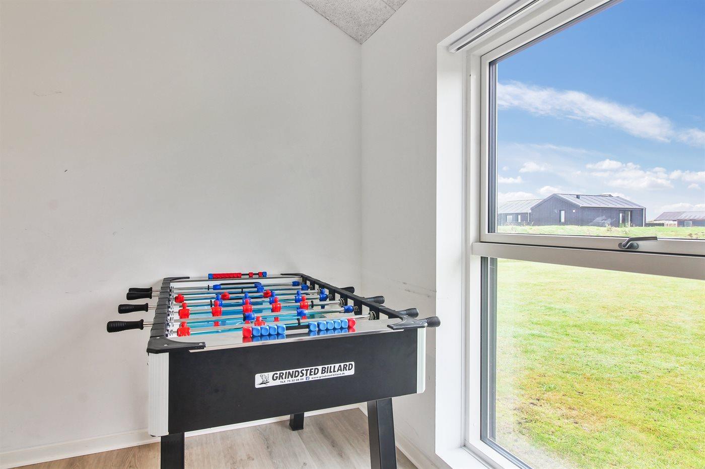 Das Haus ist sehr gut ausgestattet mit guten Schlafmöglichkeiten und Aktivitätsmöglichkeiten. Der Aktivitätsraum befindet sich im Nebengebäude, das ebenfalls mit Gästetoilette ausgestattet ist. Für die Kinder gibt es Schaukel, Rutsche, Trampolin, Fußballtor und Stangentennis. Diese Spielgeräte sind mit dem Haus auf dem angrenzenden Grundstück gemeinsam.