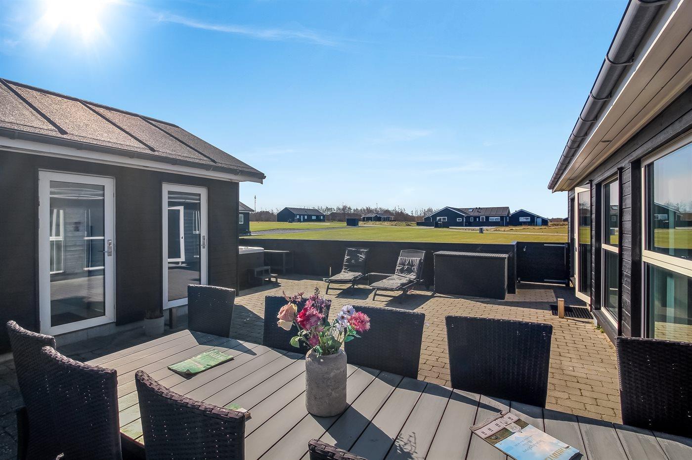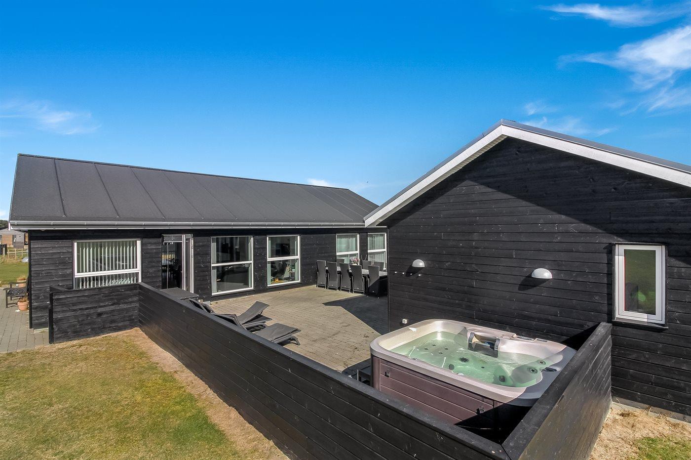 Modernes Ferienhaus in Dänemark mit Whirlpool, Sauna und großem Naturgrundstück für erholsame Stunden.