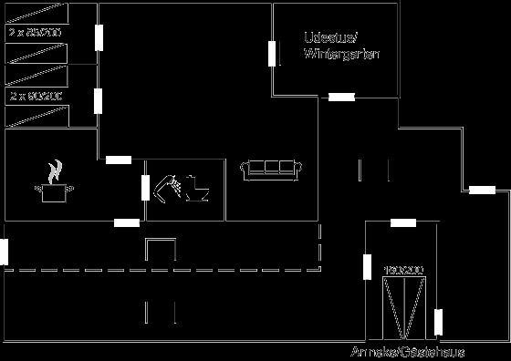 Die Schlafplätze verteilen sich auf 3 Schlafräume. 2 Schlafplätze in einem Doppelbett. 4 Schlafplätze in Einzelbetten. 2 von diesen Schlafplätzen befinden sich im Gästehaus.