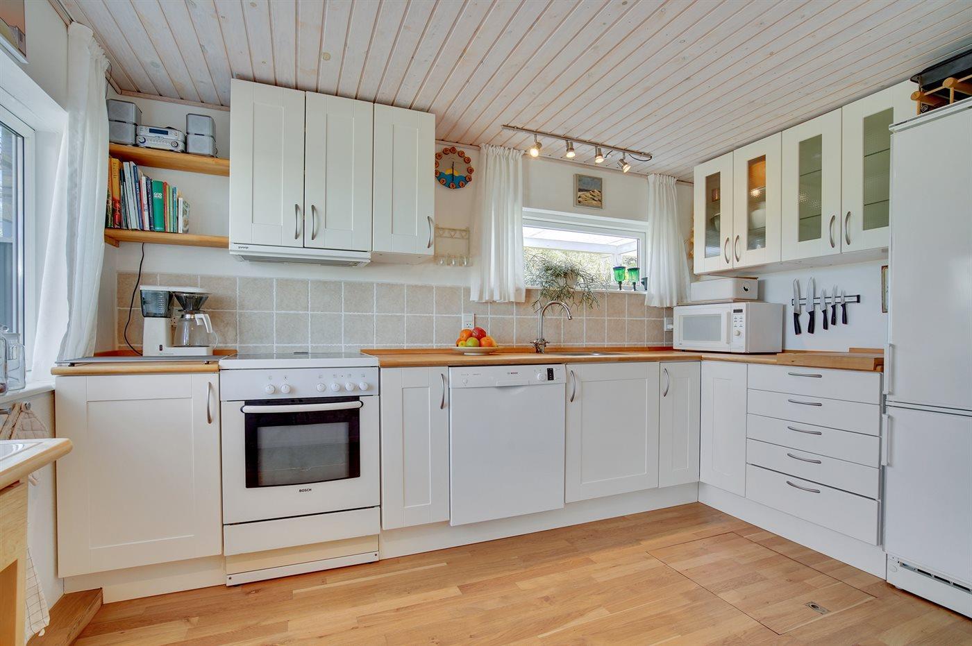 Dicht am schönen Badestrand, mit Meeresblick sowohl vom Haus als auch vom Grundstück, liegt dieses gemütliche Ferienhaus. Zum Haus gehört ein kleines Gästehaus, das mit Doppelbett eingerichtet ist.