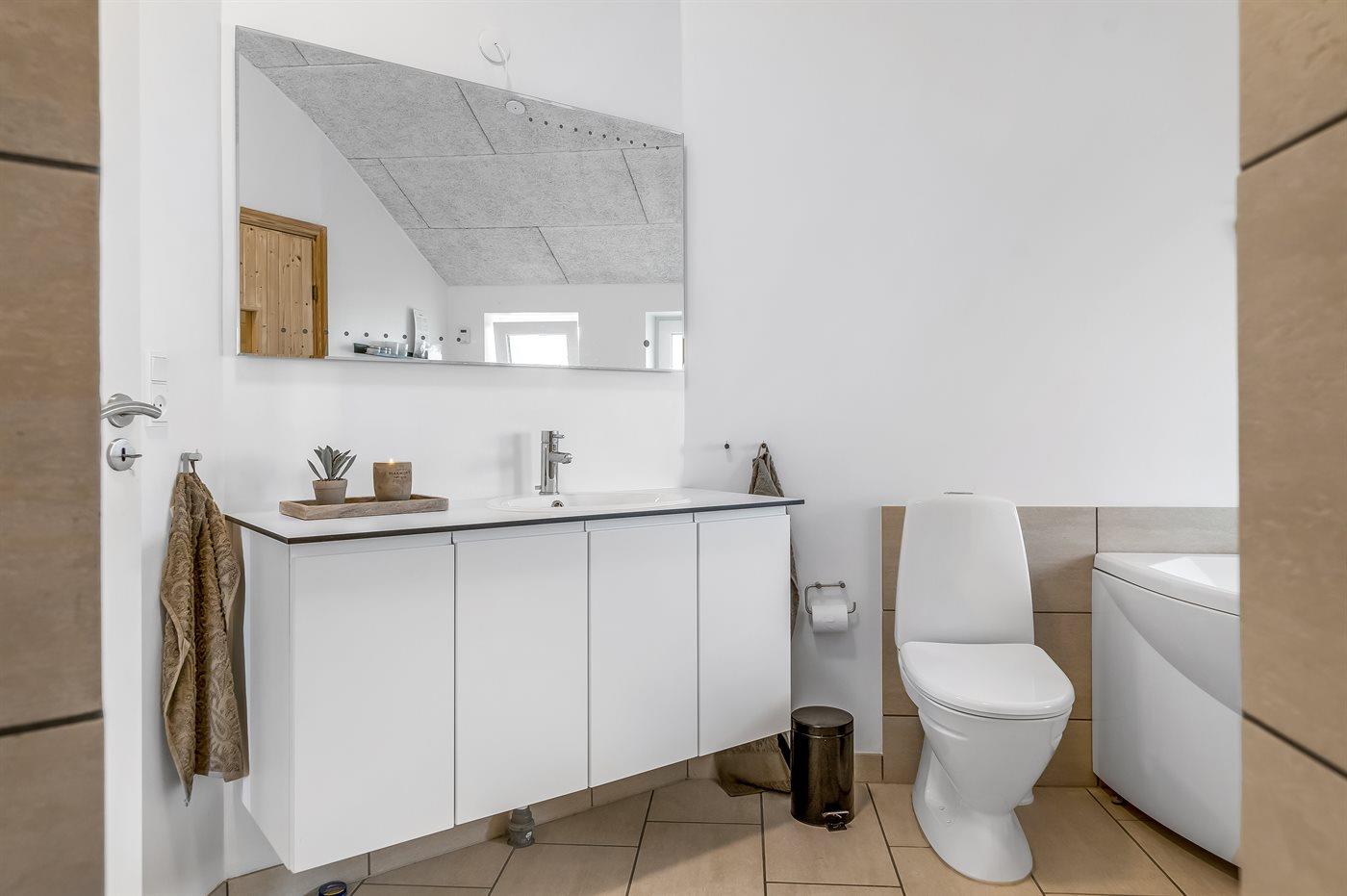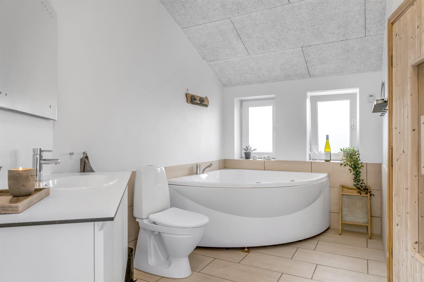 Es gibt 2 Badezimmer mit Duschnische und 2 Toiletten. Fußbodenheizung in 2 Badezimmern. Es steht eine Sauna zur Verfügung in der Sie sich so richtig entspannen können.