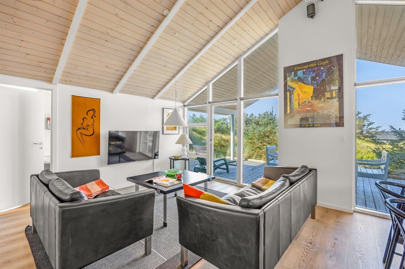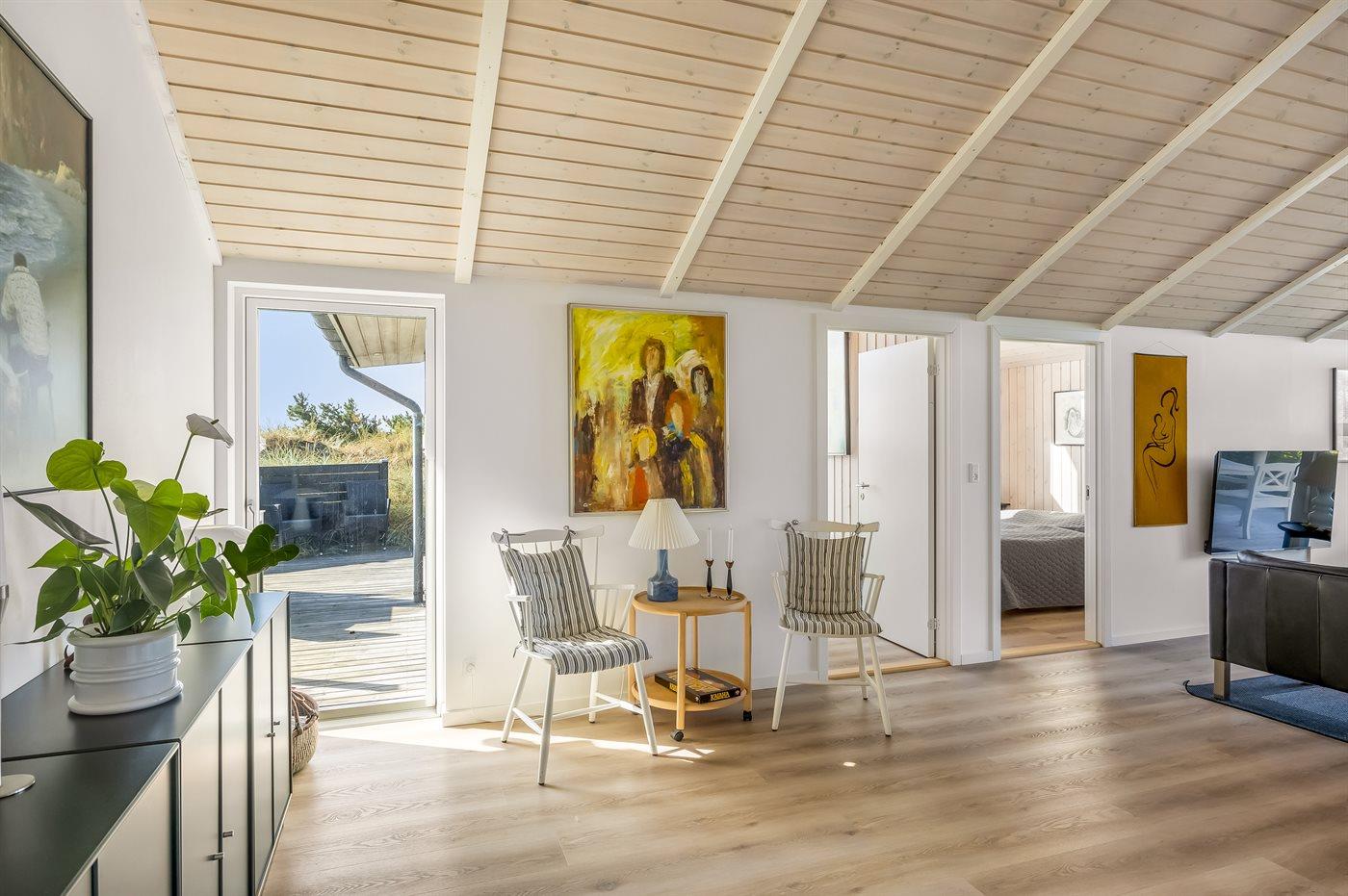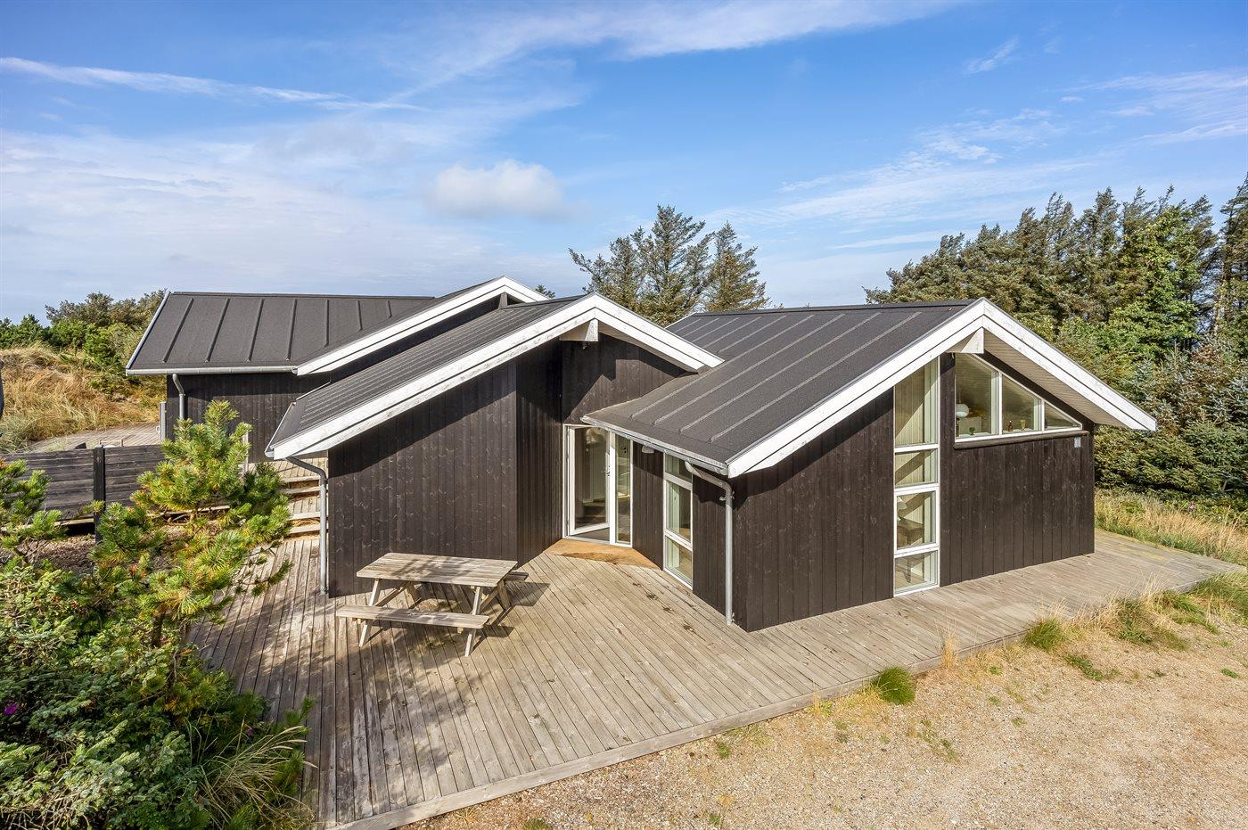 Dieses phantastische, neu errichtete Ferienhaus mit Meeresblick liegt im Feriengebiet Grønhøj – nah am schönen breiten Sandstrand und der abwechslungsreichen Landschaft mit Dünenplantagen, Mooren, Wiesen und Wäldern. Die Einrichtung des Hauses macht es sowohl für Familien als auch mehrere Paare geeignet.