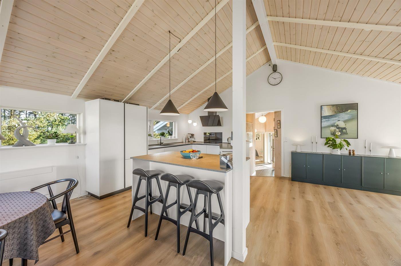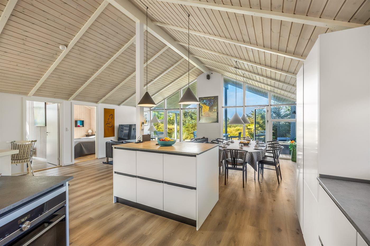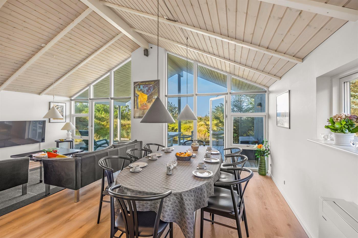 Dieses phantastische, neu errichtete Ferienhaus mit Meeresblick liegt im Feriengebiet Grønhøj – nah am schönen breiten Sandstrand und der abwechslungsreichen Landschaft mit Dünenplantagen, Mooren, Wiesen und Wäldern. Die Einrichtung des Hauses macht es sowohl für Familien als auch mehrere Paare geeignet.