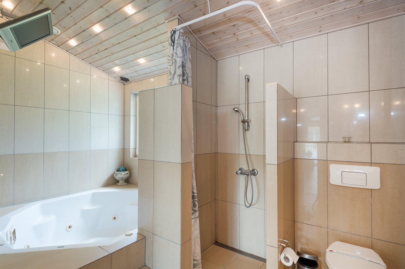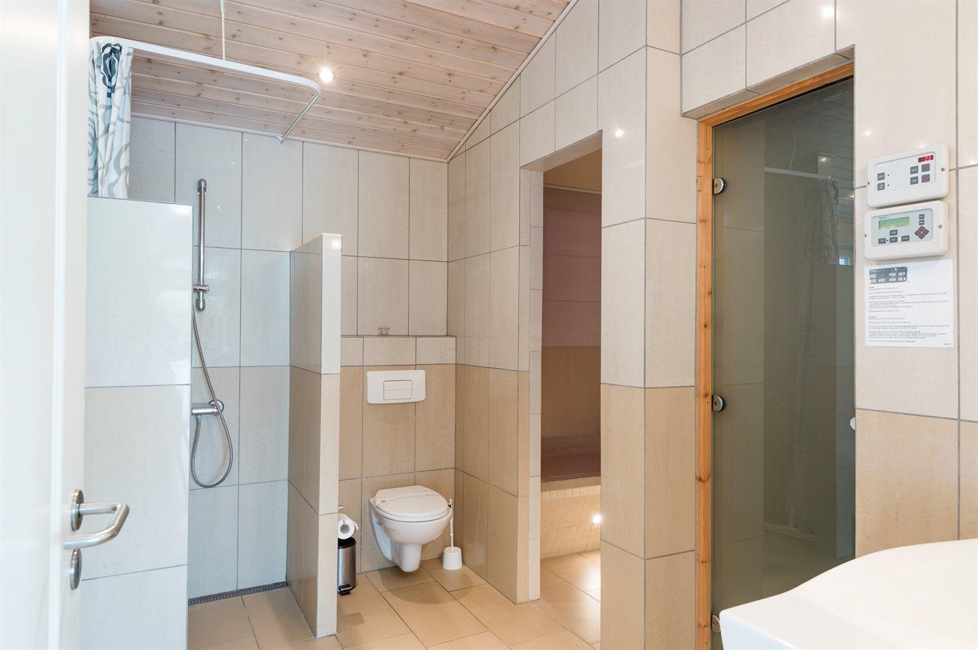Es gibt 2 Badezimmer und 2 Toiletten Multifunktionsdusche. Es steht eine Sauna zur Verfügung in der Sie sich so richtig entspannen können.