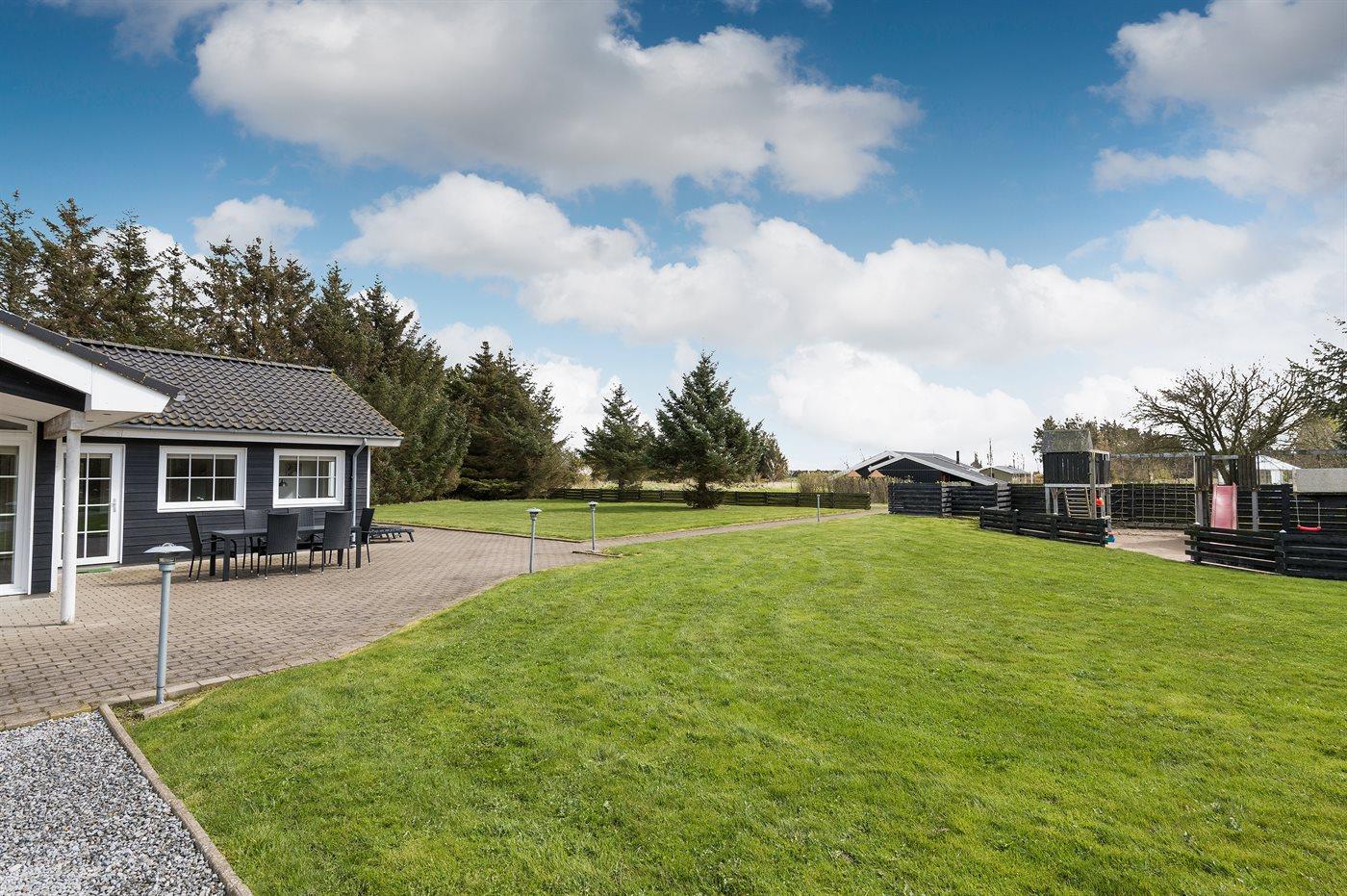 Die Ferienunterkunft liegt auf einem 2903 m² großen Naturgrundstück. Die Entfernung zum Meer beträgt 850 m. Die nächste Einkaufsmöglichkeit liegt 500 m entfernt. Es steht ein offenes Terrassenareal zur Verfügung. Außerdem gibt es überdachte Terrasse. Schaukel. Spielturm. Rutsche.Es steht eine Garage zur Verfügung. Parkplatz auf dem Grundstück.