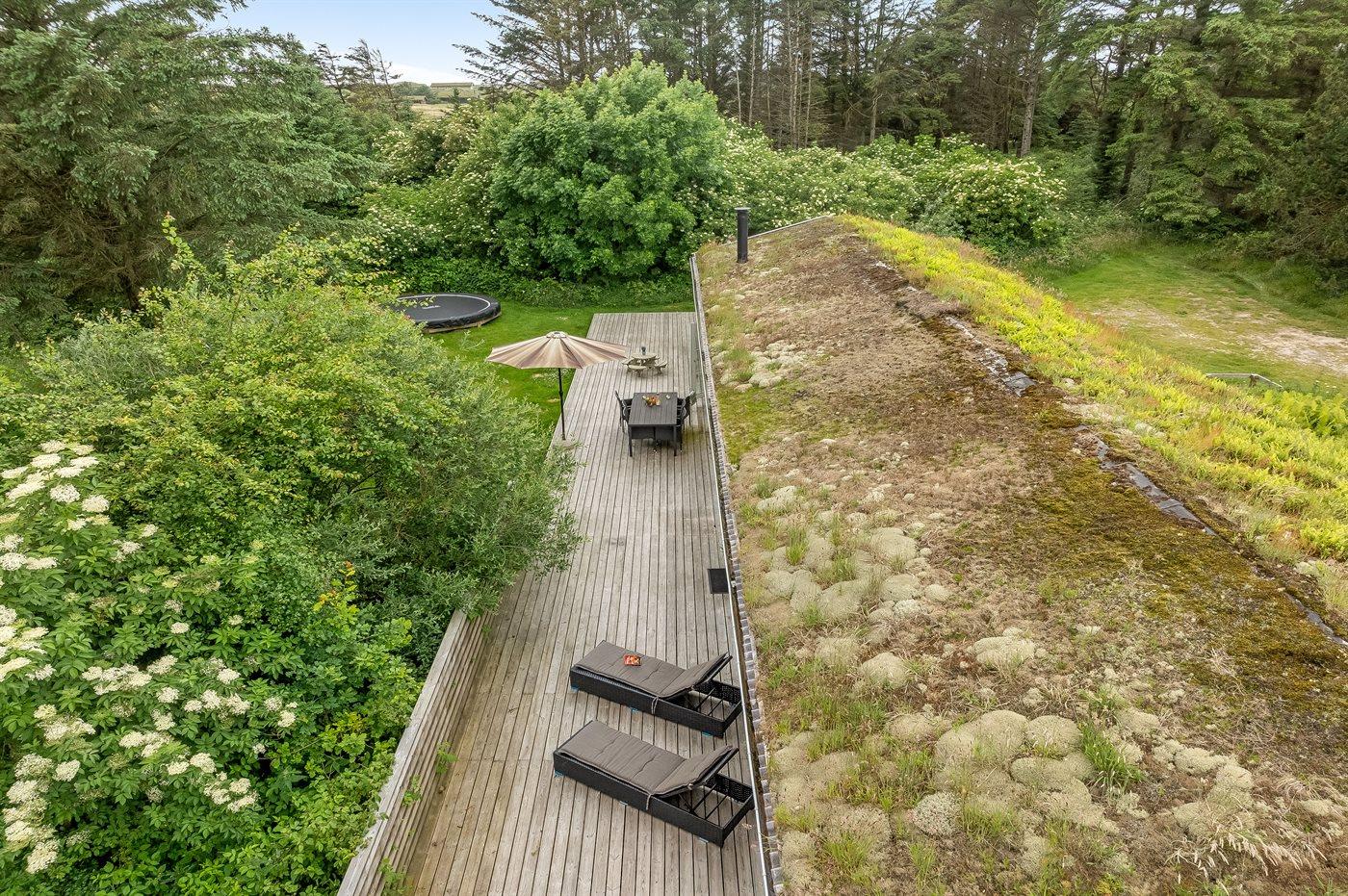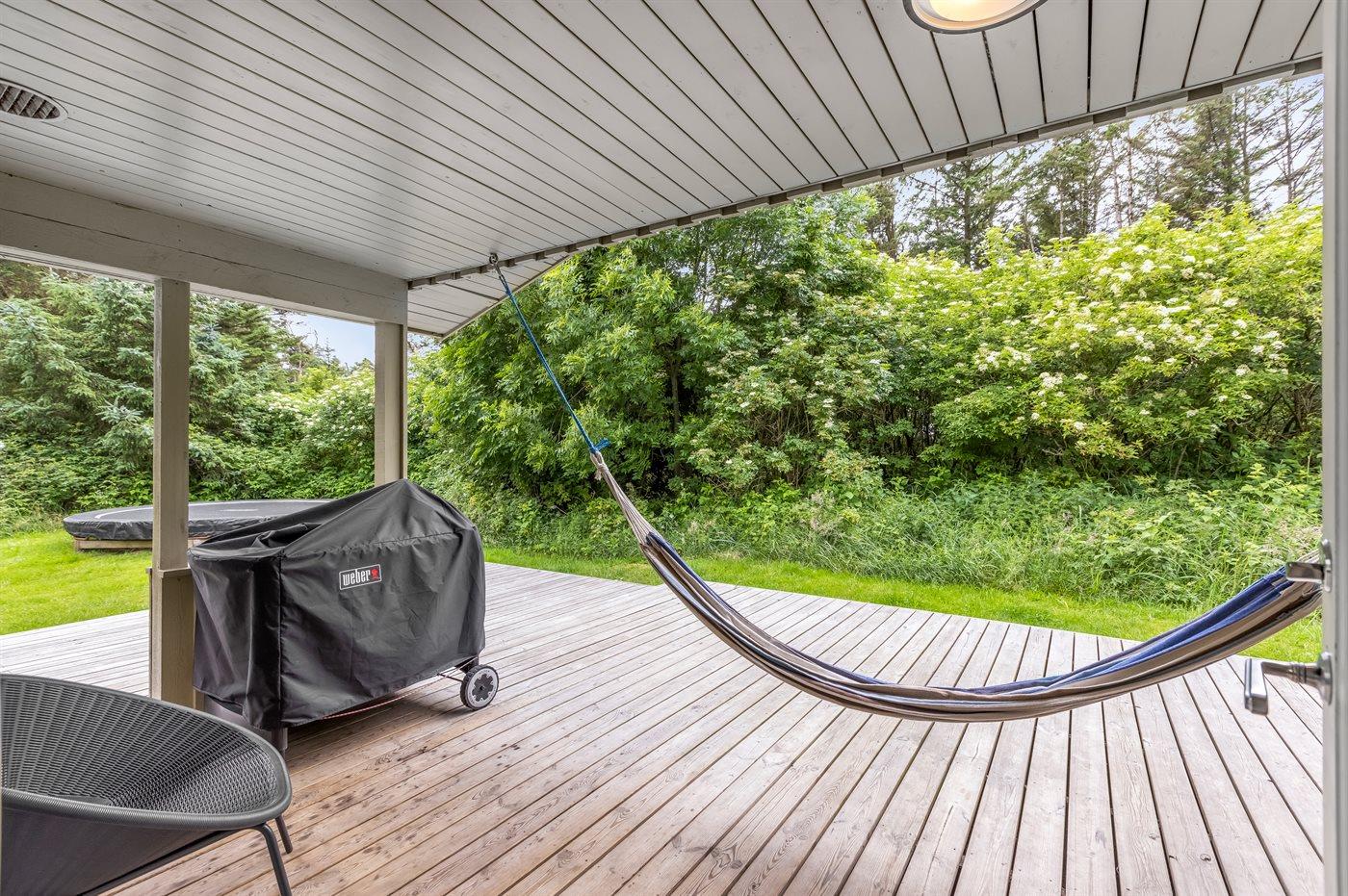 Die Ferienunterkunft liegt auf einem 1250 m² großen Naturgrundstück. Die Entfernung zum Meer beträgt 1200 m. Die nächste Einkaufsmöglichkeit liegt 2500 m entfernt. Es steht ein offenes Terrassenareal zur Verfügung. Außerdem gibt es überdachte Terrasse. Schaukel. Es steht ein Grill zur Verfügung. Es ist ein Ladestecker für Elektroautos installiert. Parkplatz auf dem Grundstück.