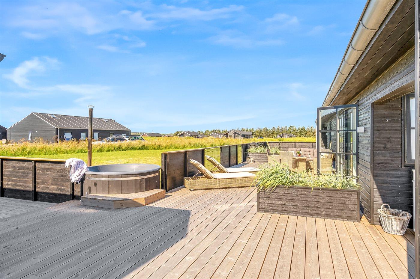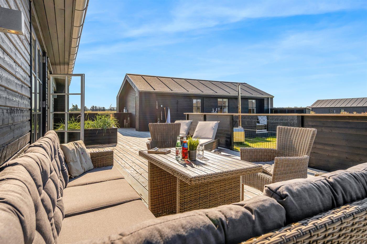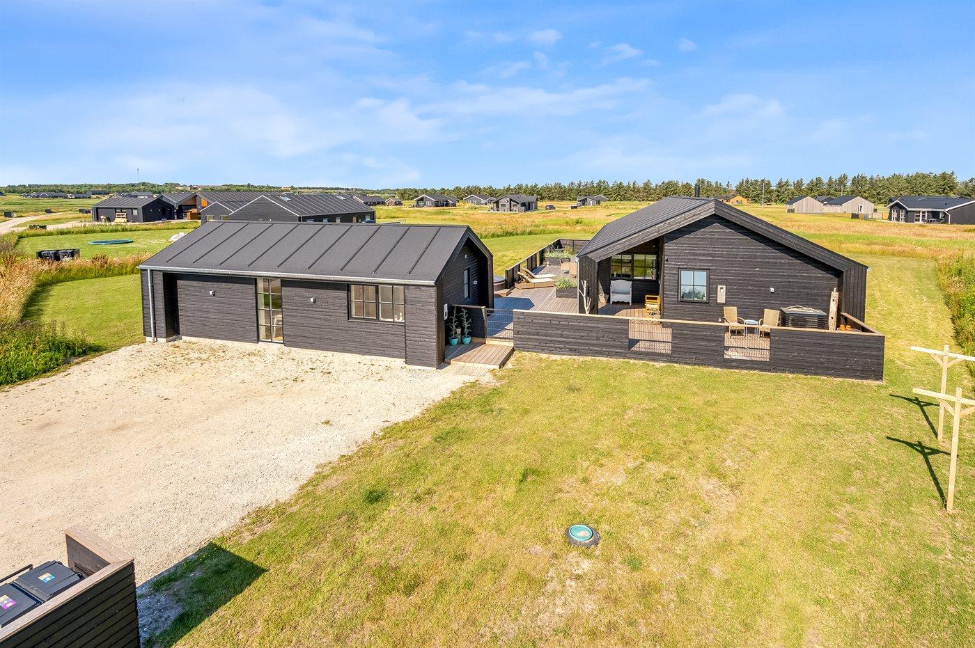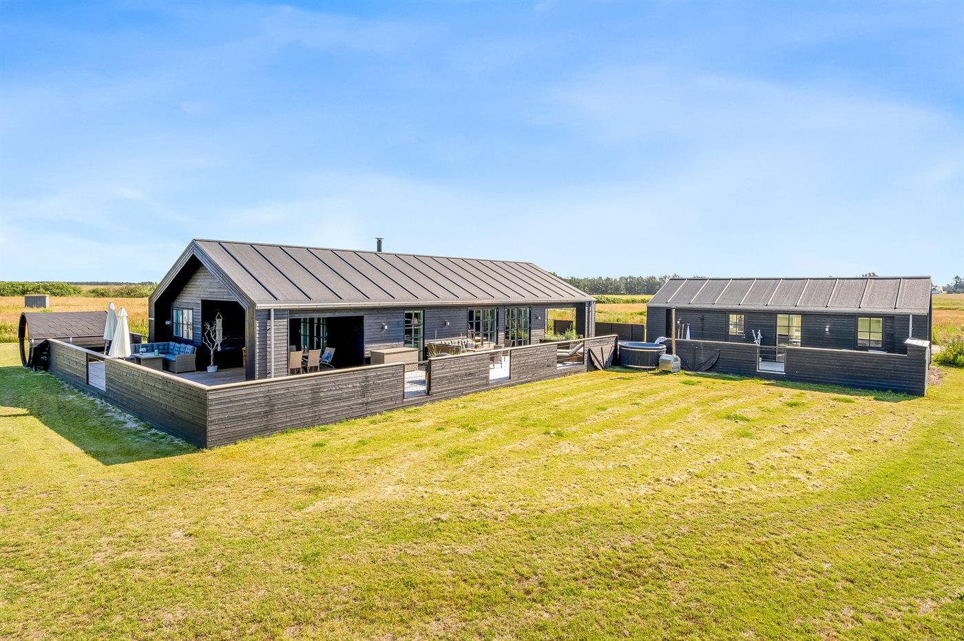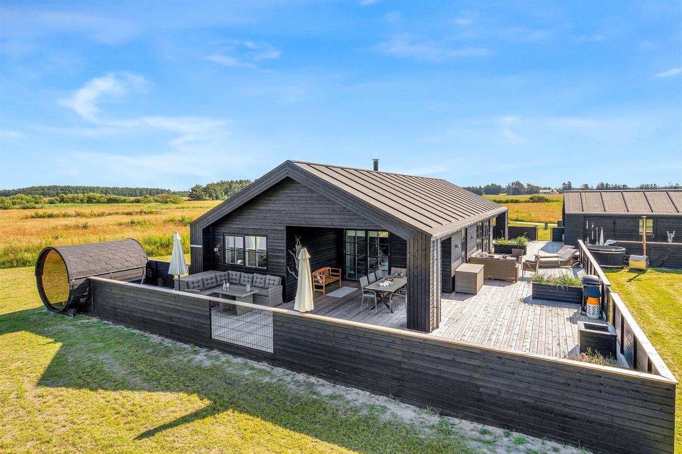 Modernes Aktivitäts-Ferienhaus in Grønhøj mit Sauna, Whirlpool und großem Naturgrundstück nahe Strand.