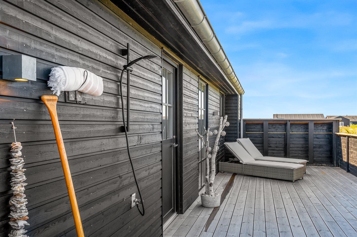 Die Ferienunterkunft liegt auf einem 2250 m² großen Naturgrundstück. Die Entfernung zum Meer beträgt 1000 m. Die nächste Einkaufsmöglichkeit liegt 500 m entfernt. Es steht ein geschlossenes und zum Teil überdachtes Terrassenareal zur Verfügung. Außensauna. Außendusche. Es steht ein Grill zur Verfügung. Es ist ein Ladestecker für Elektroautos installiert. Parkplatz auf dem Grundstück.