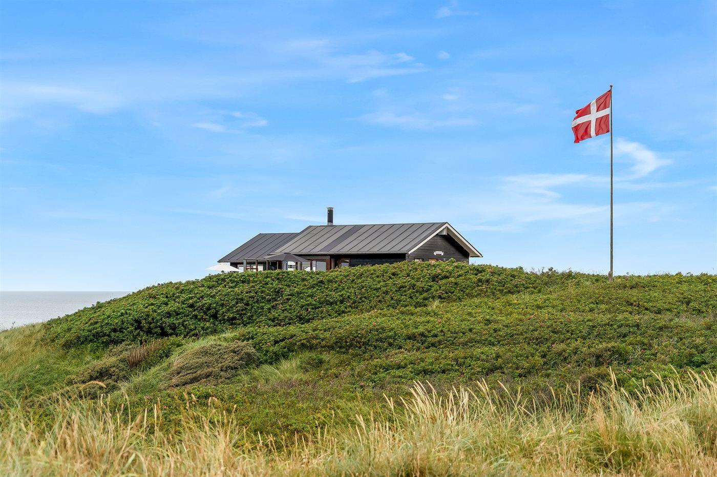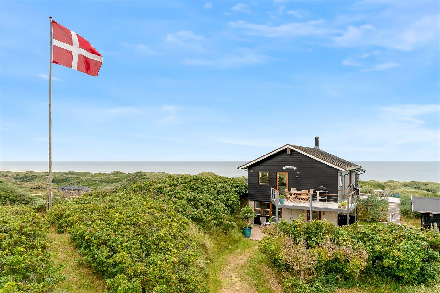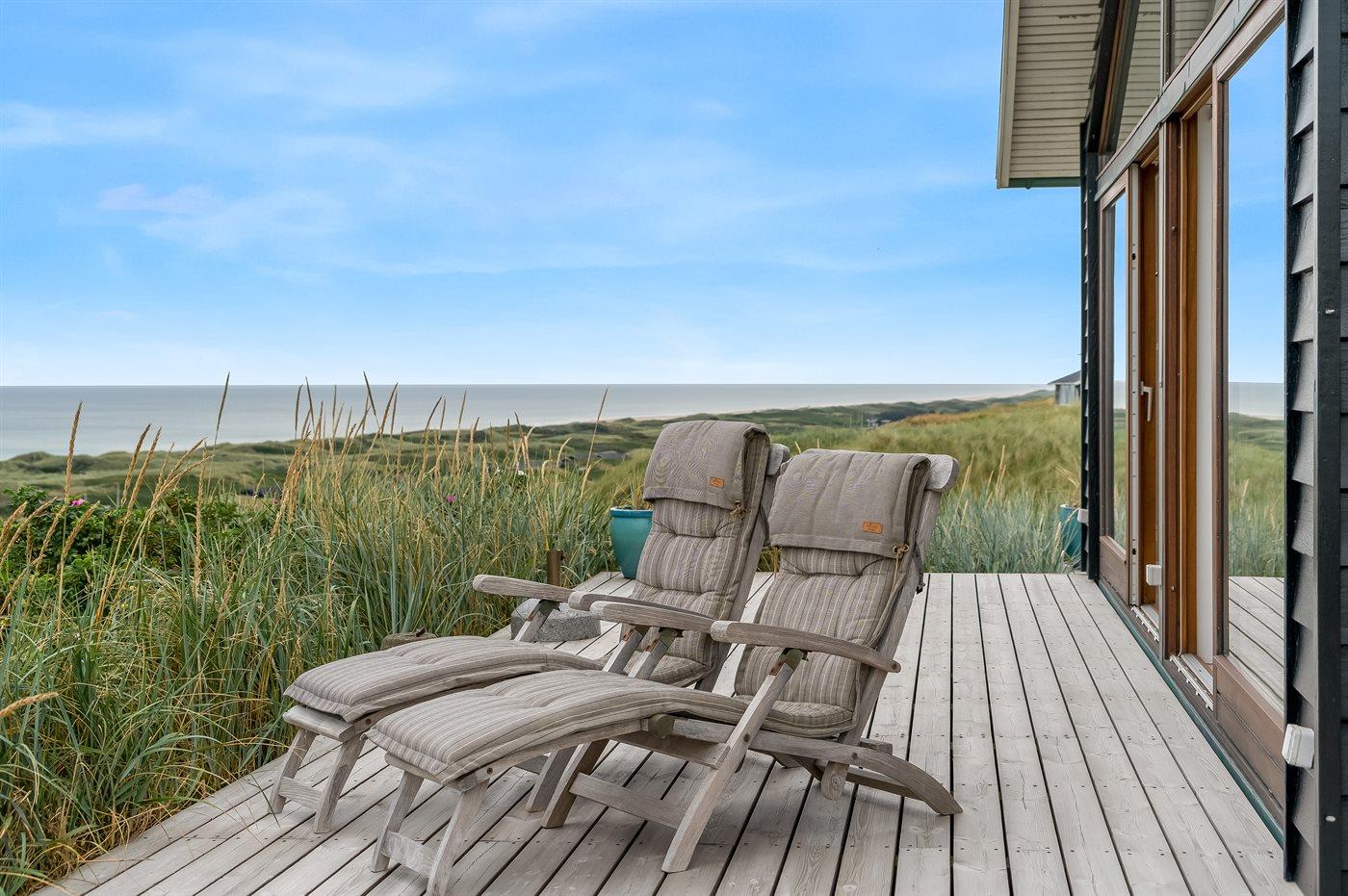 Modernes Ferienhaus mit Meerblick, Sauna, Whirlpool und großem Terrassenbereich an der Westküste Dänemarks.