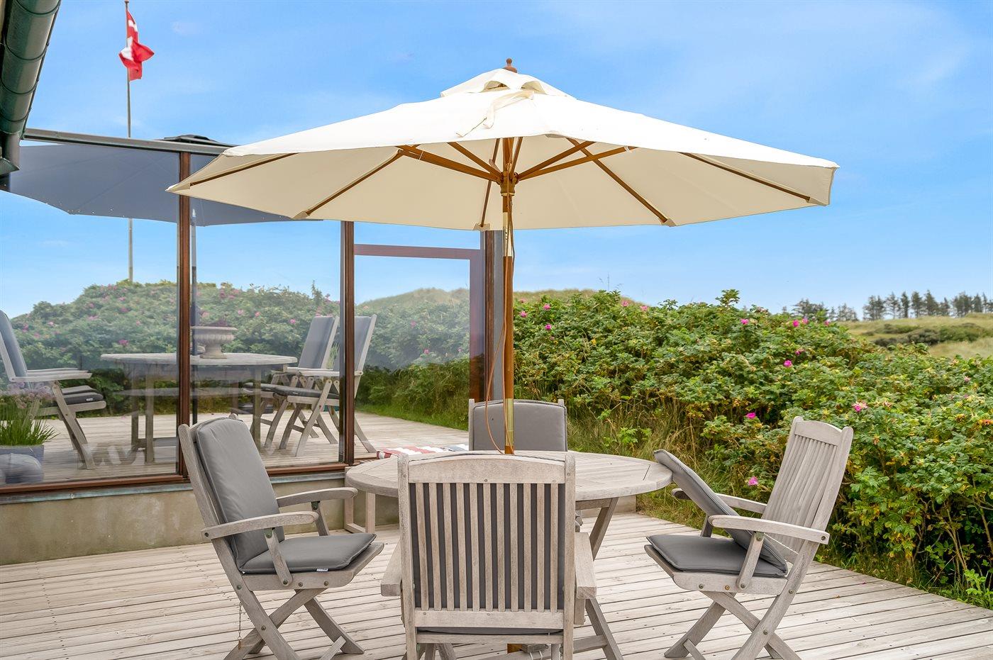 Die Ferienunterkunft liegt auf einem 4361 m² großen Dünengrundstück. Die Entfernung zum Meer beträgt 300 m. Die nächste Einkaufsmöglichkeit liegt 3300 m entfernt. Es steht ein 92 m² Terrassenareal zur Verfügung. Außerdem gibt es 15 m² überdachte Terrasse. Es steht ein offenes Terrassenareal zur Verfügung. Außendusche. Es steht ein Grill zur Verfügung. Es ist ein Ladestecker für Elektroautos installiert. Ladestecker Typ 2. Parkplatz auf dem Grundstück.