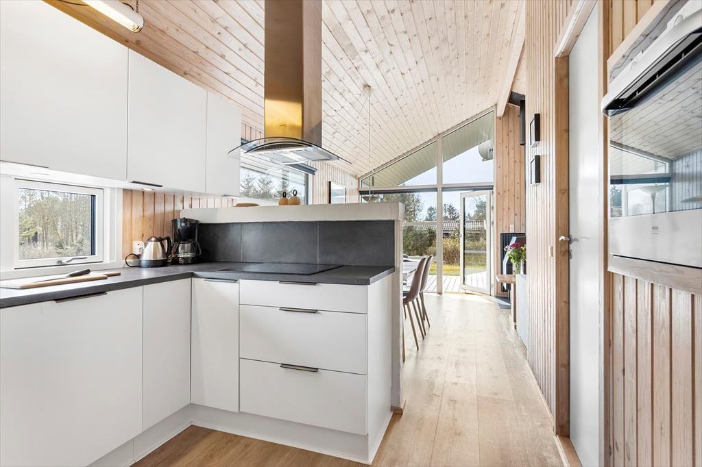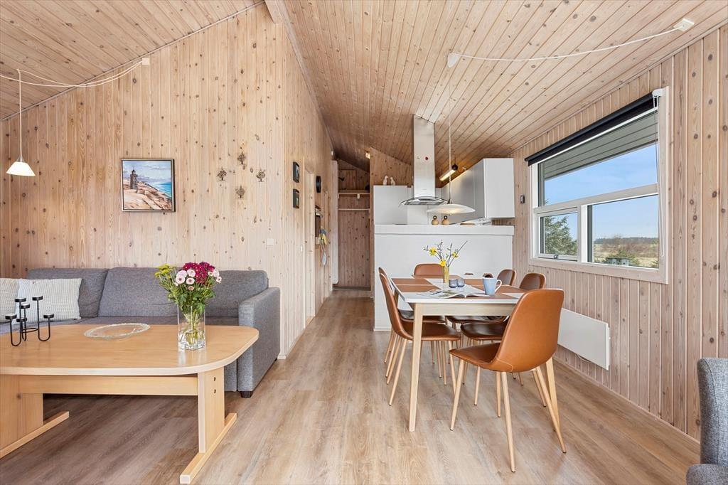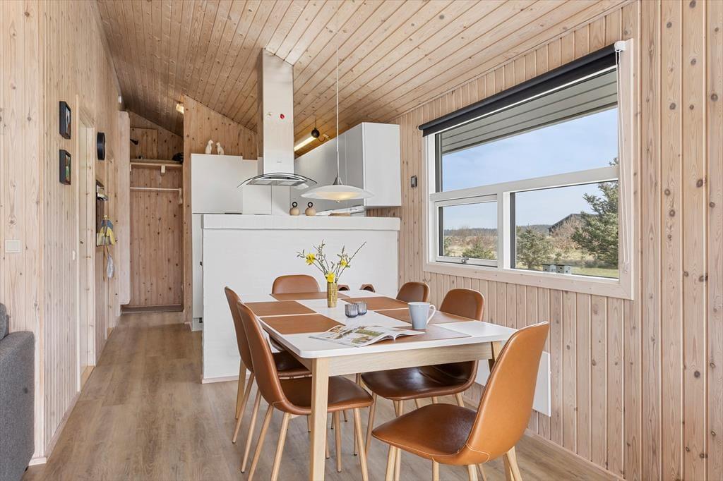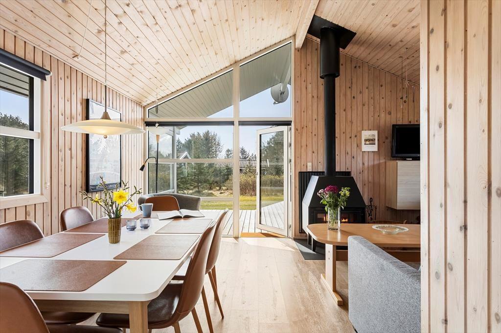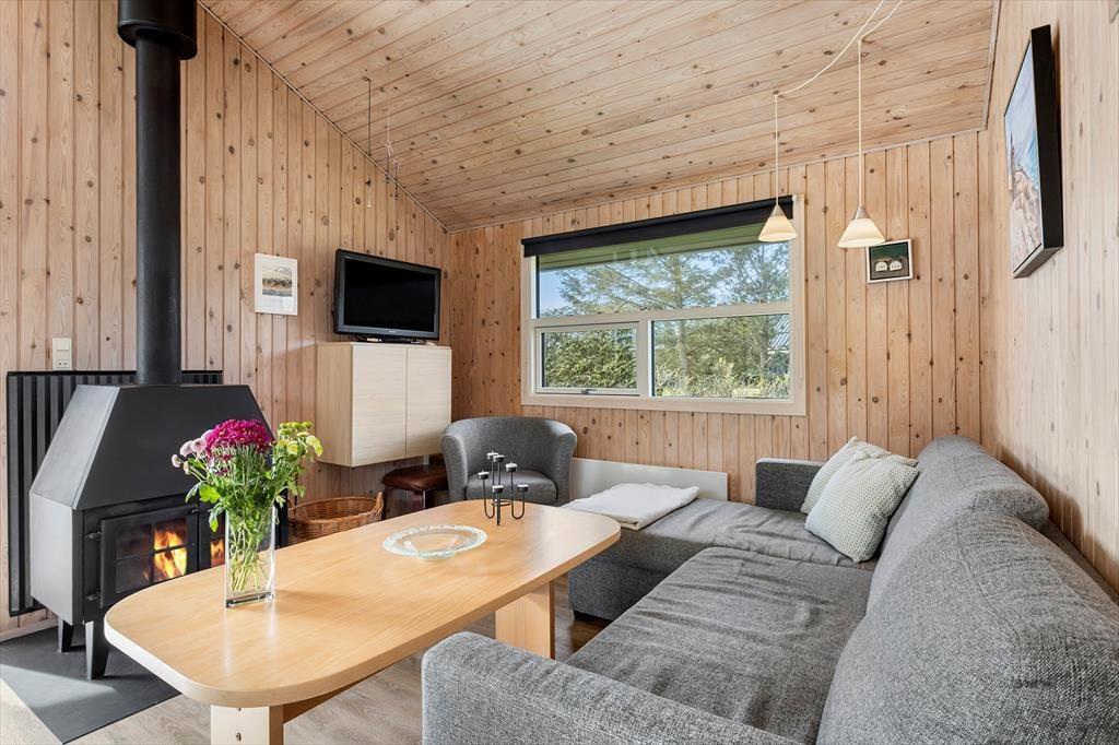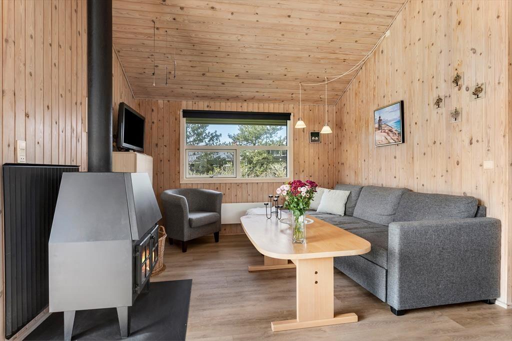 Die Einrichtung dieses attraktiven Urlaubsdomizils wird bei Ihnen schnell die echte dänische Ferienhausstimmung aufkommen lassen. Das Herzstück des Hauses ist der überaus gemütliche Aufenthaltsbereich, der die Küche, den Essbereich und den Wohnraum offen und harmonisch in sich vereint. Aufgrund zahlreicher Fenster wird der Aufenthaltsbereich vom Tageslicht durchflutet. Die holzverkleideten Wände tragen maßgeblich zum angenehmen, heimeligen Wohngefühl bei. Dies ist genau das, was Sie brauchen - nicht weniger und nicht mehr. Allabendlich können Sie das Feuer im Kaminofen anheizen und beim romantischen Knistern des Ofens wunderbar entspannte und erholsame Stunden im Kreise Ihrer Lieben verleben. Es gibt drei schöne Schlafzimmer im Haus. Hinzu gesellt sich das Schlafsofa im Wohnzimmer, dass bei Bedarf einem sechsten Familienmitglied als Schlafgelegenheit dient. Das ansprechende, schöne Badezimmer beinhaltet eine Dusche.