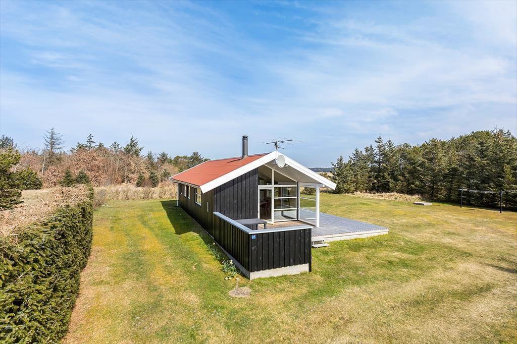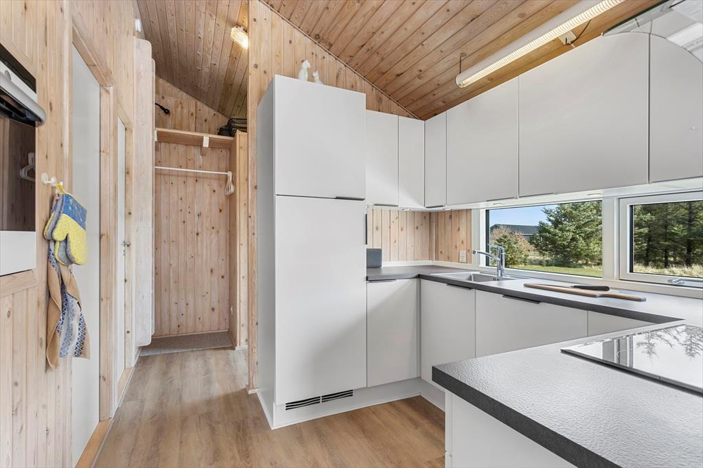 Das ansprechende Urlaubsdomizil befindet sich im ruhigen Ferienhausgebiet von Grønhøj, zwischen den pulsierenden Badeorten Blokhus und Løkken. Bereits nach 900 Metern spüren Sie den Sand von einem der besten Badestrände an der Westküste unter Ihren Füßen. Die gesamte Umgebung begeistert mit prachtvoller Natur, Dünen und wogendem Strandhafer. Die Gegend eignet sich daher sehr schön für ausgedehnte Spaziergänge und Wanderungen in der einzigartigen Landschaft. Unternehmen Sie beispielsweise eine Tour in das unter Schutz stehende Gebiet Lille Norge, wo Sie bereits mehrere sehr schöne Aussichtspunkte erwarten. Bedeutend aufregender dürften Ausflüge in den beliebten Vergnügungspark Fårup Sommerland und in das subtropische Badeland in Blokhus verlaufen. In dieser Gegend, oben an der faszinierenden Jammerbucht, ist es nie weit zu verschiedensten Erlebnismöglichkeiten - ganz gleich, ob Sie nach Unterhaltung, Shoppingmöglichkeiten, Restaurants und Lokalitäten, Sehenswürdigkeiten und Attraktionen oder einfach nur atemberaubend schöne Natur suchen.
