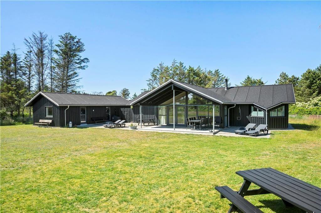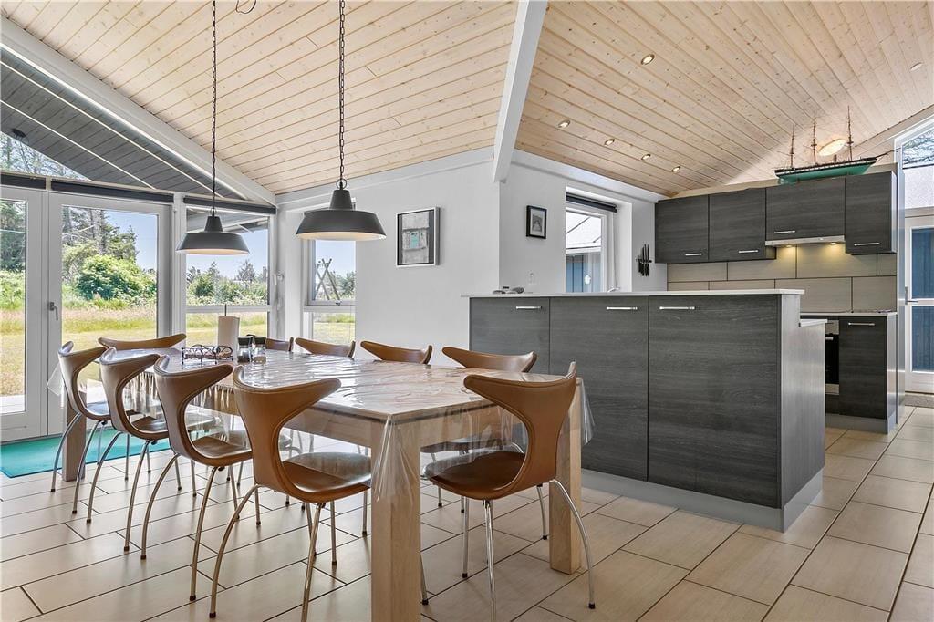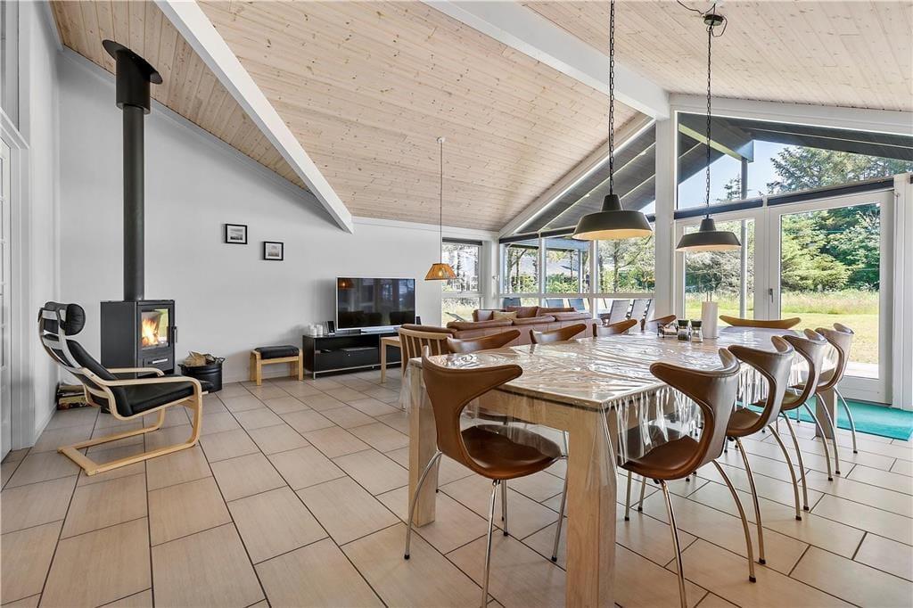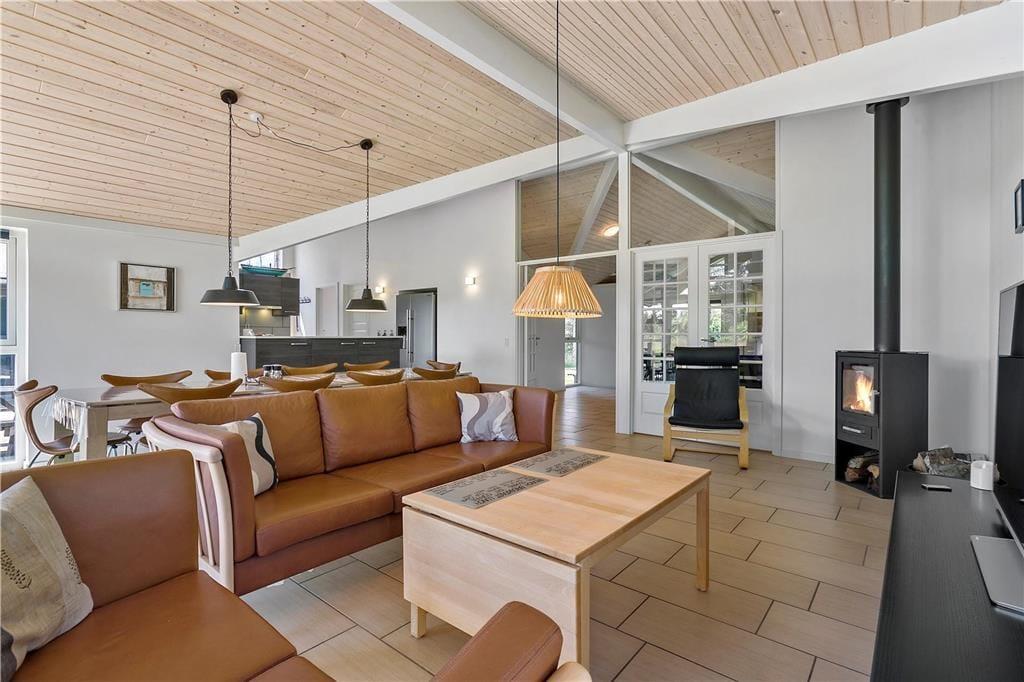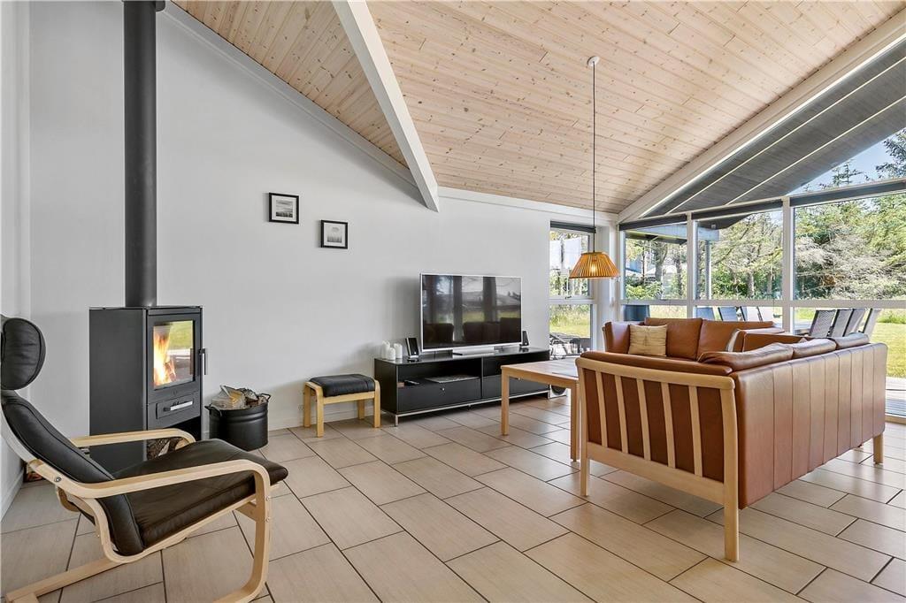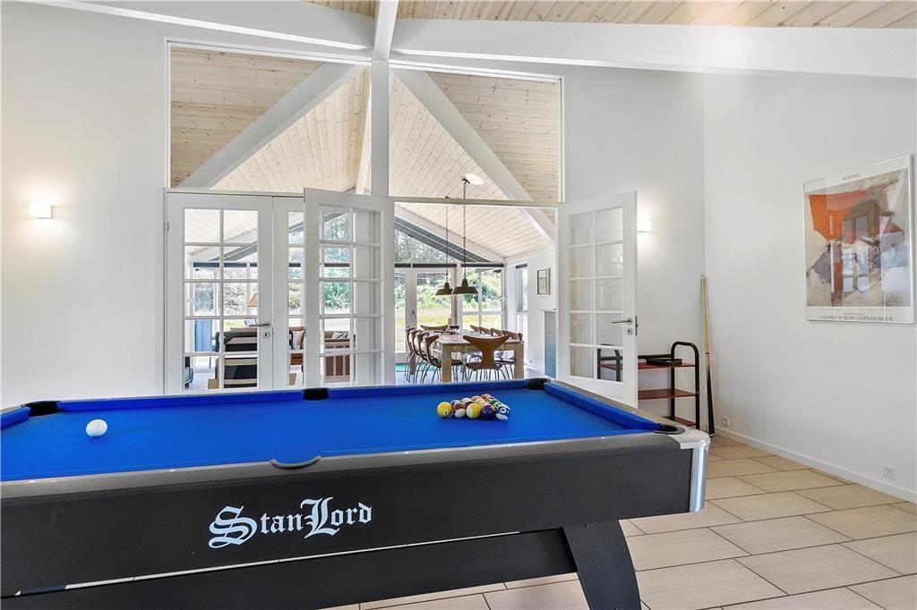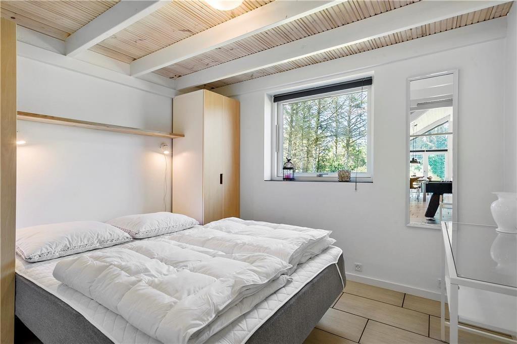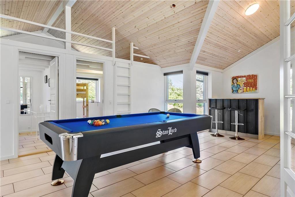 Das Ferienhaus wurde 2018 erbaut, sodass alle Räume hell und einladend wirken. Große Fensterfronten lassen die Sonnenstrahlen ins Haus und die hohe Decke, Fußbodenheizung sowie der Kaminofen sorgen für eine angenehme und warme Atmosphäre. Das Wohnzimmer ist offen mit einer schönen und funktionalen Küche verbunden, und nebenan befindet sich das Spielzimmer, in dem Sie sich beim Billard oder Tischfußball vergnügen können. Wenn Sie den Abend lieber ganz entspannt verbringen möchten, können Sie ein Bad im Whirlpool nehmen oder die Sauna im größten der beiden Badezimmer des Hauses genießen. Vier Schlafzimmer gehören ebenfalls zur durchdachten Raumaufteilung, sodass acht Gäste hier bequem Platz finden.
