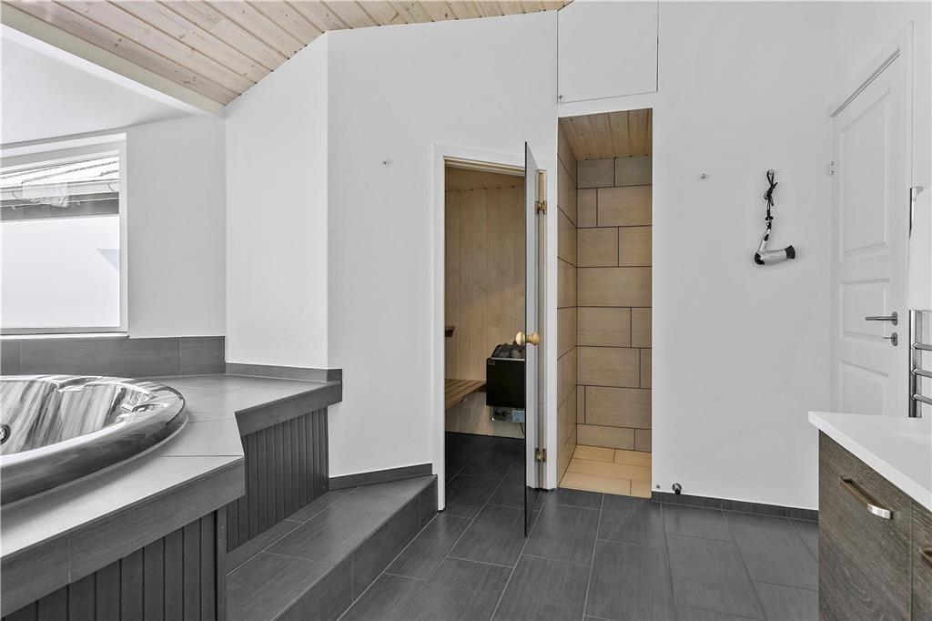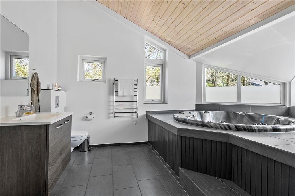 Ein wunderschöner Urlaub erwartet Sie in Marthasvej 3 in Grønhøj. Mit Kaminofen, Whirlpool, Sauna und Spielzimmer können Sie drinnen sowohl Spaß haben als auch entspannen, und draußen genießen Sie das Sonnenlicht auf der Terrasse und dem großen Rasen.