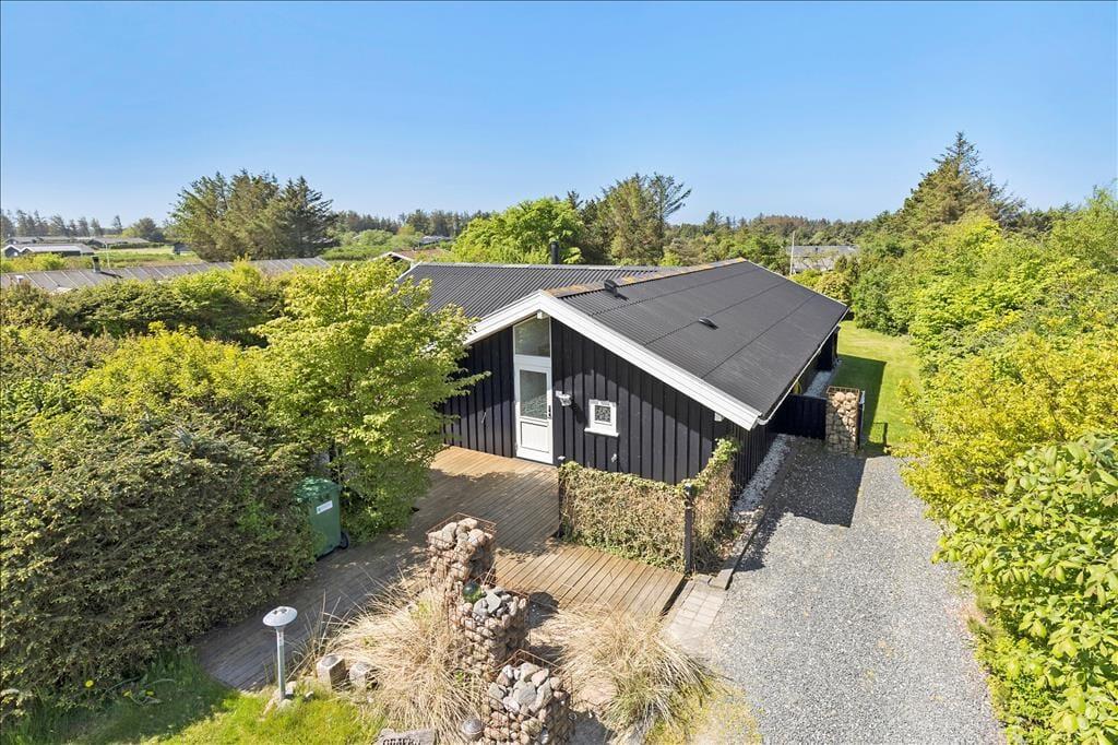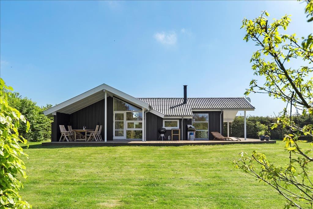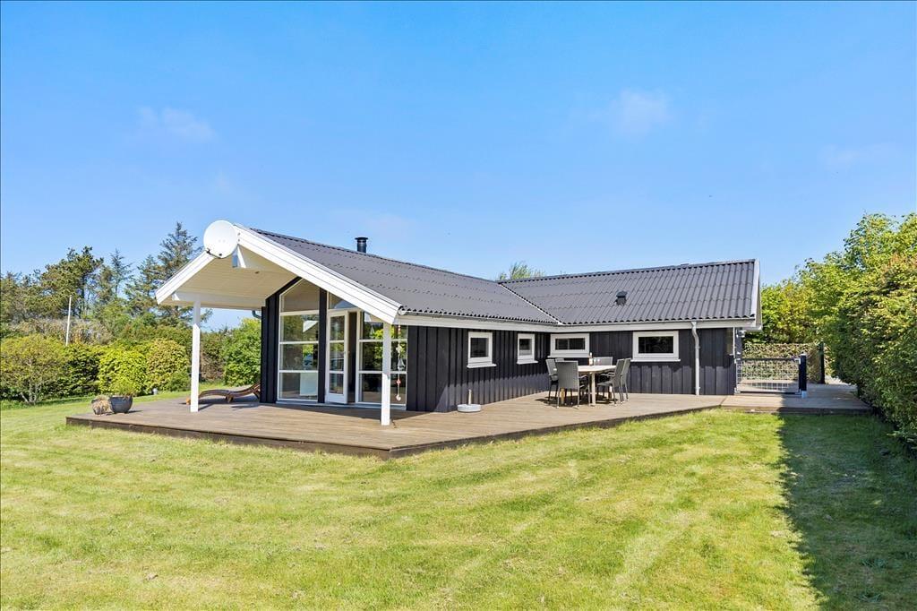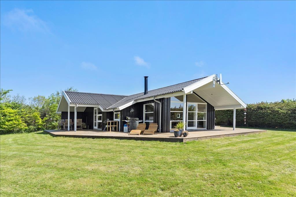Das Haus ist von einer großen, zusammenhängenden Holzterrasse umgeben, die das Leben im Freien wirklich in Szene setzt. Hier könnt ihr der Sonne im Laufe des Tages folgen – von den ersten Sonnenstrahlen bei der Morgenkaffee, über die Mittagszeit und das Mittagessen bis hin zum Abend, wenn der Grill angezündet wird. Die Zeit dazwischen? Sie kann auf einer Liege mit einem guten Krimi oder bei Spielen und Ballspielen auf dem großen Rasen verbracht werden. Der Garten ist im Allgemeinen eine ganz private Oase, die auf allen Seiten durch Randbepflanzung gut geschützt ist – perfekt für diejenigen, die Ruhe und Entspannung im Urlaub suchen.